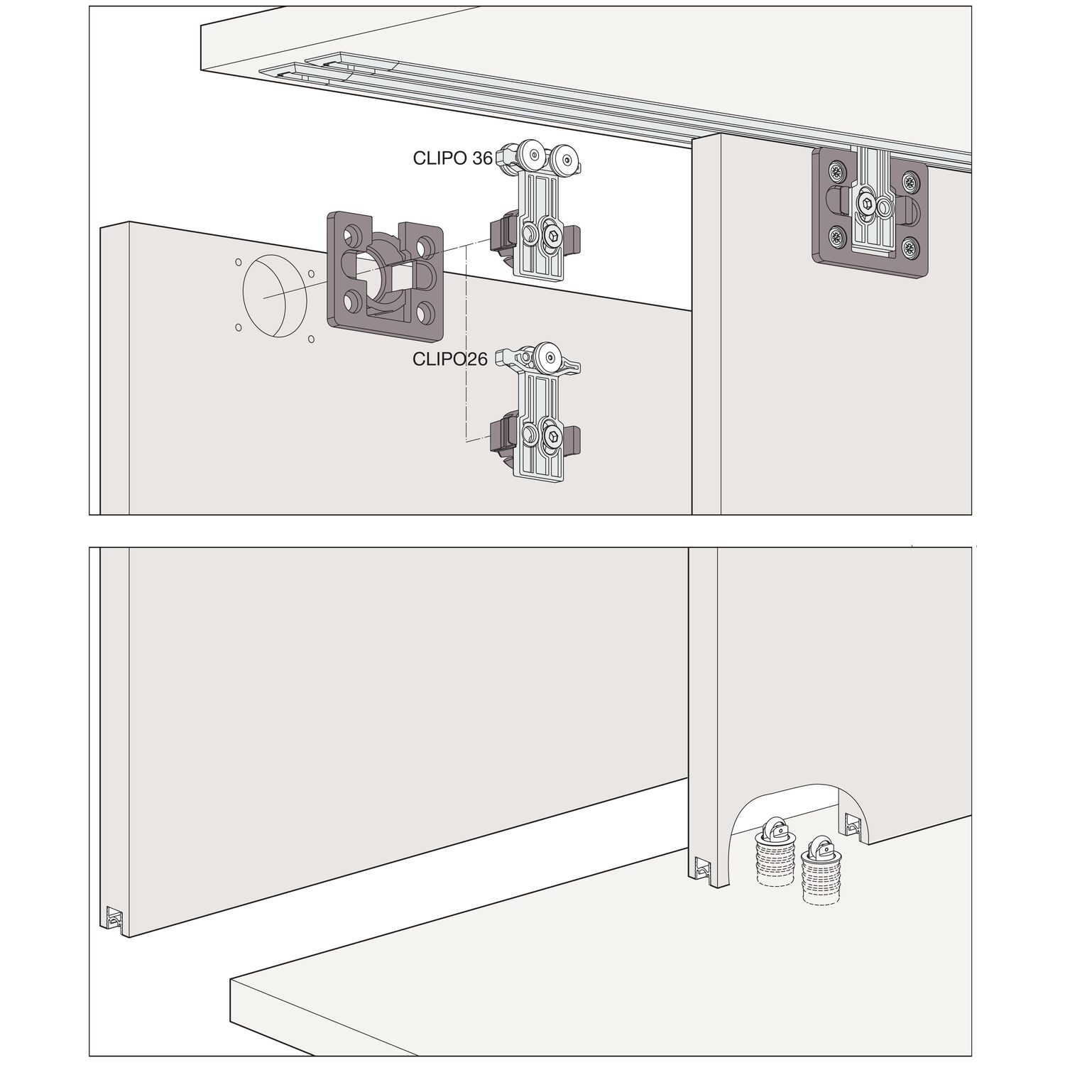 HAWA Clipo 36 G IS Beschlägegarnitur Innenfront zum Klemmen, 1 türig