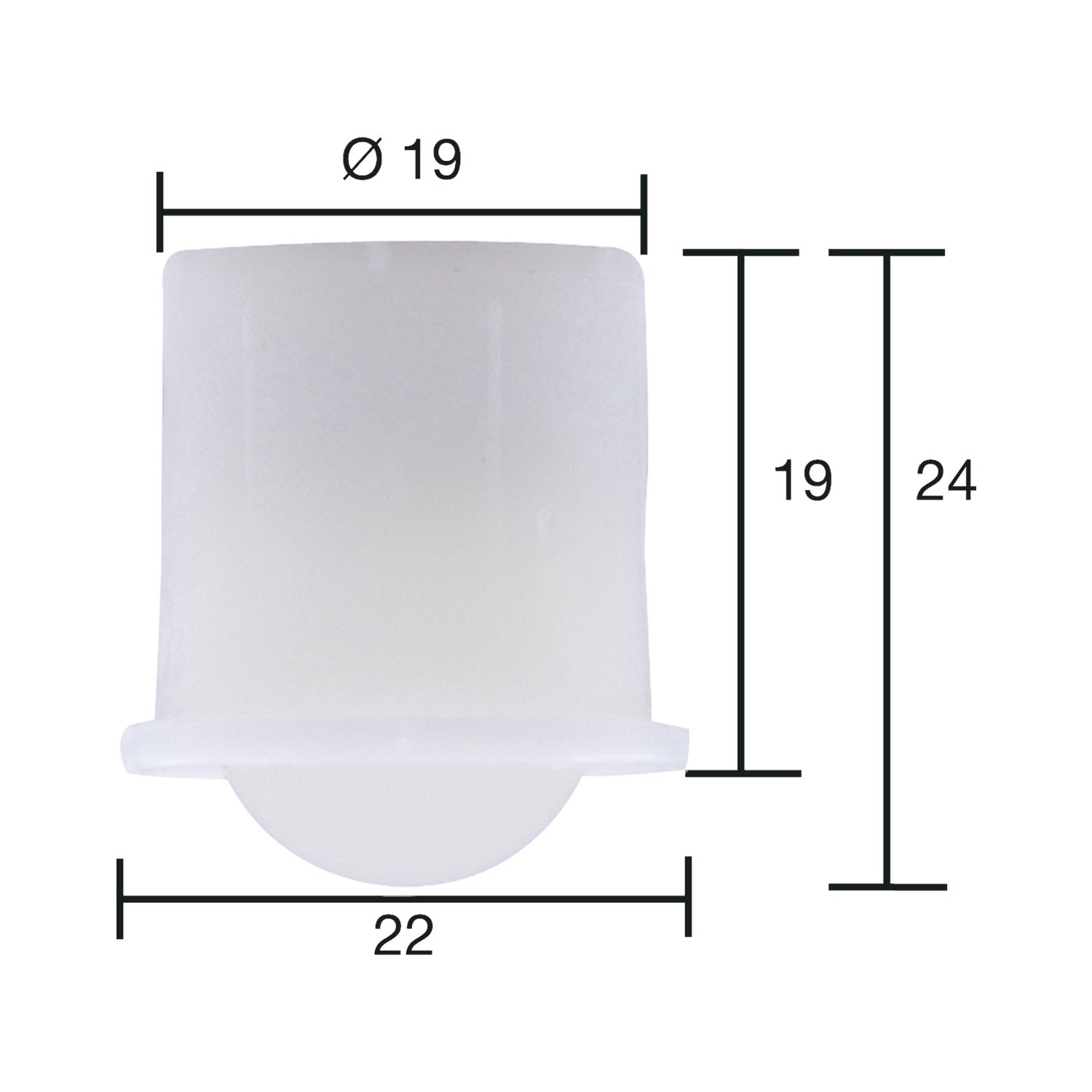 Kugelrolle 0 soft ø 19 mm,Tiefe 19 mm, Kunststoff weiß