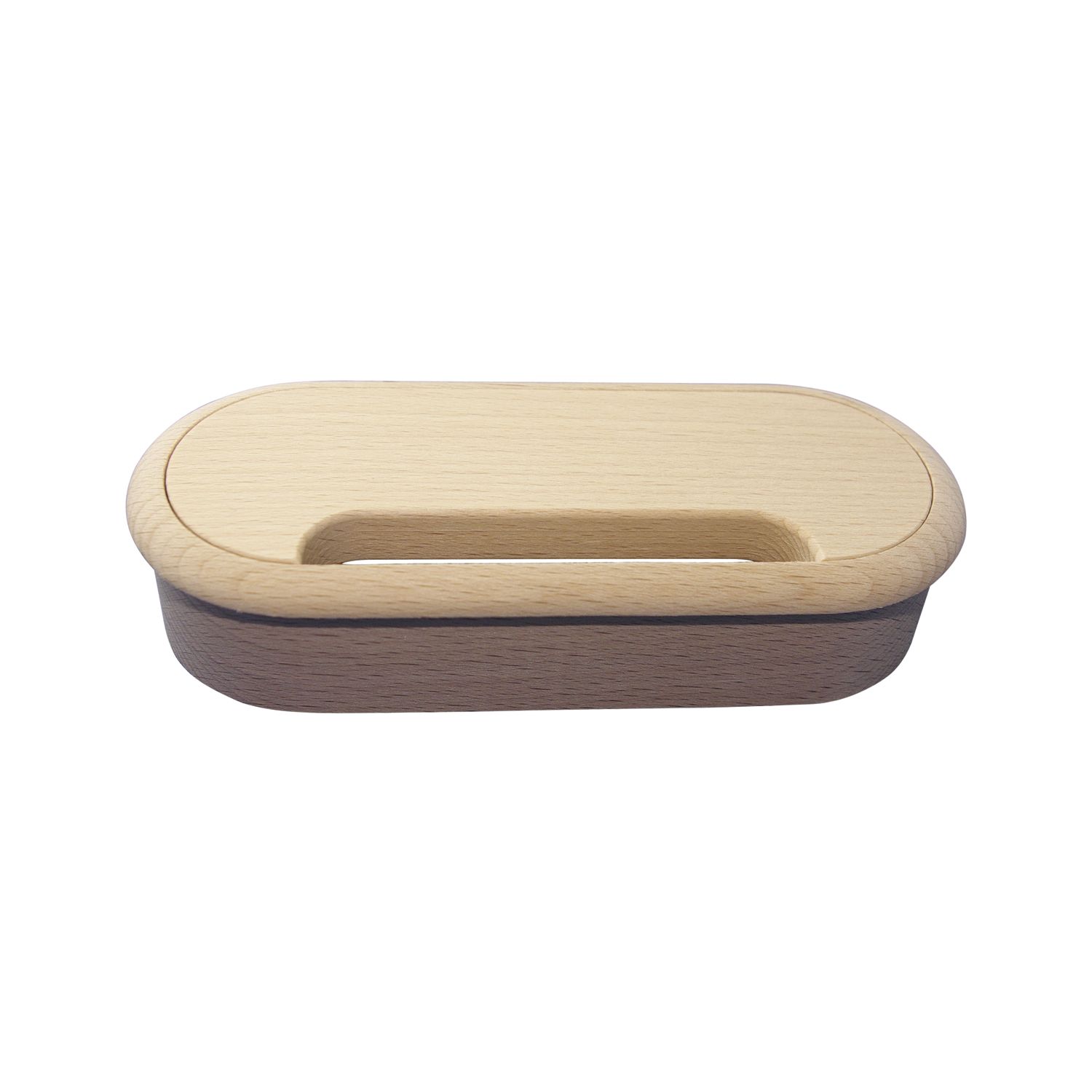 Kabeldurchgang oval, Holz, 57 x 143 mm, Buche roh