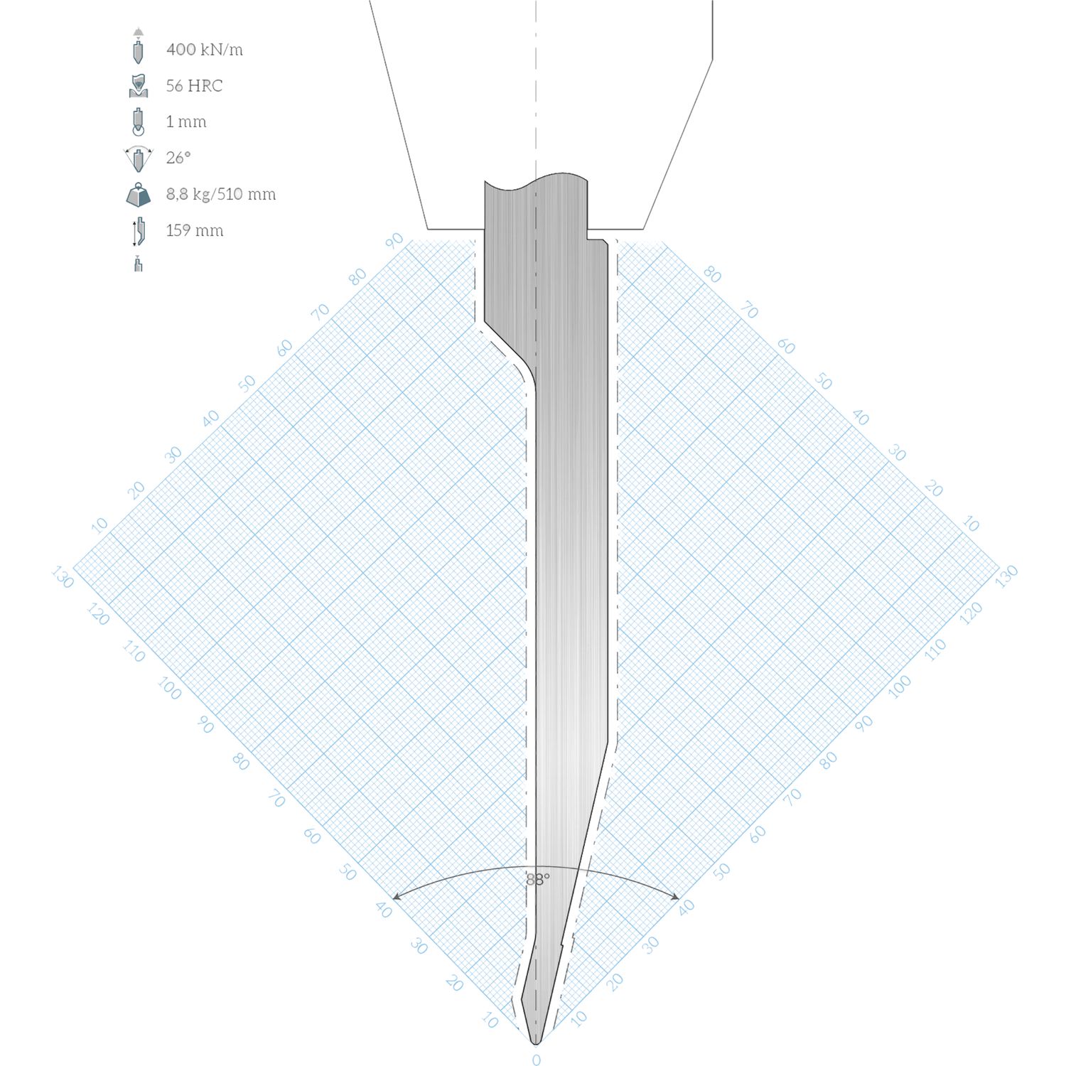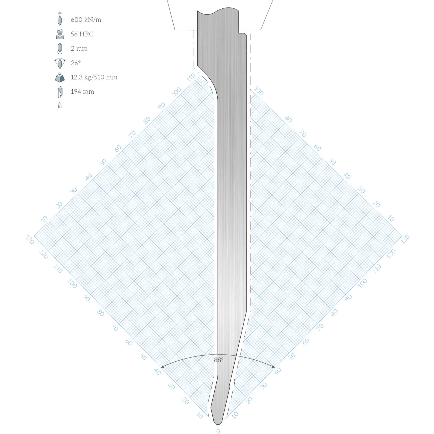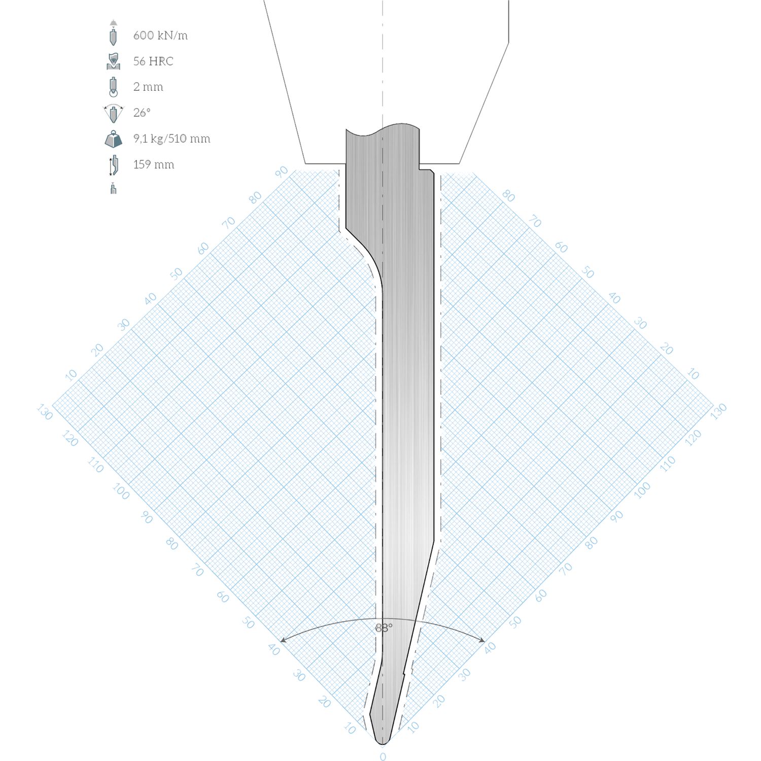 LVD Standard-Oberwerkzeug WILA-Aufnahme R10W gerade L=510 26° 800kN