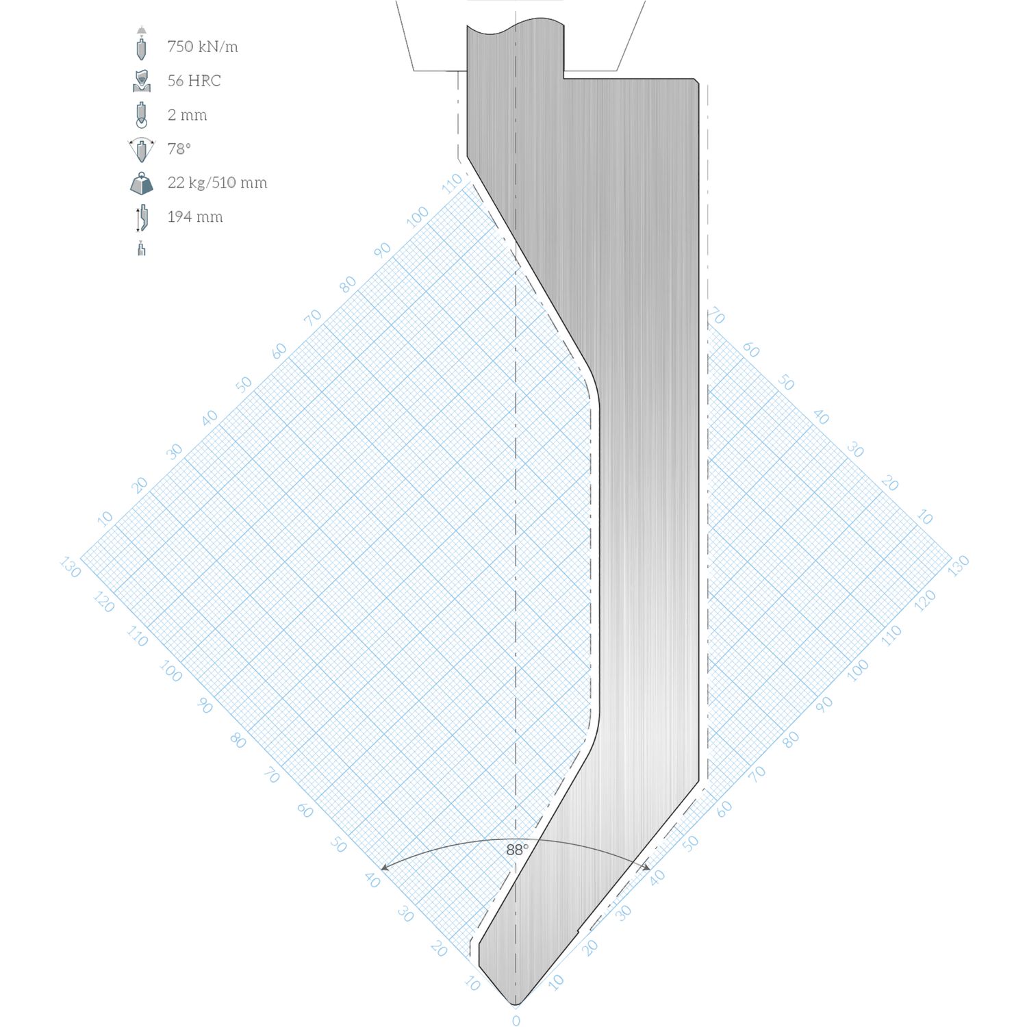 LVD Standard-Oberwerkzeug WILA-Aufnahme E15W gekröpft L=250 78° 680kN