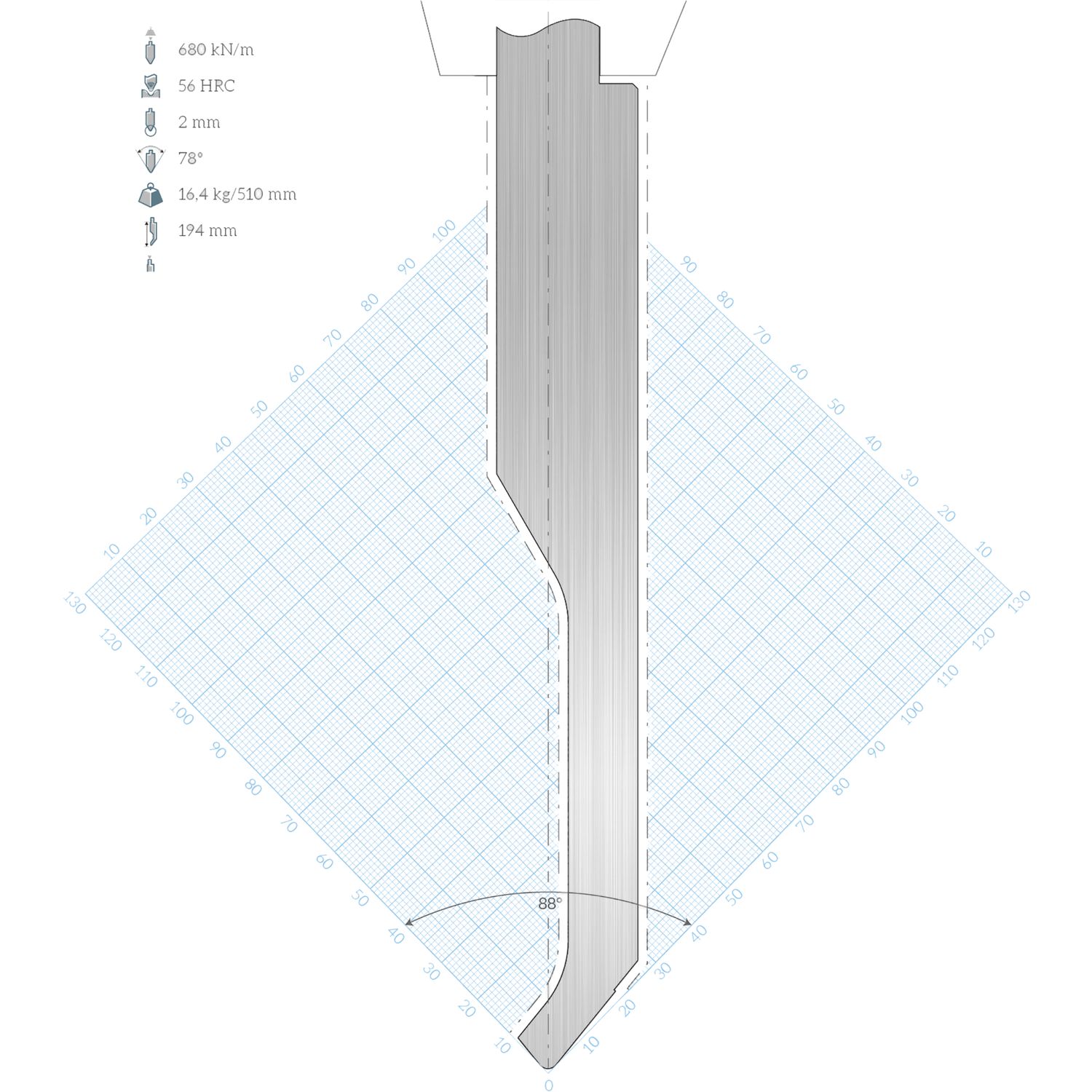 LVD Standard-Oberwerkzeug WILA-Aufnahme E15W gekröpft L=510 78° 680kN