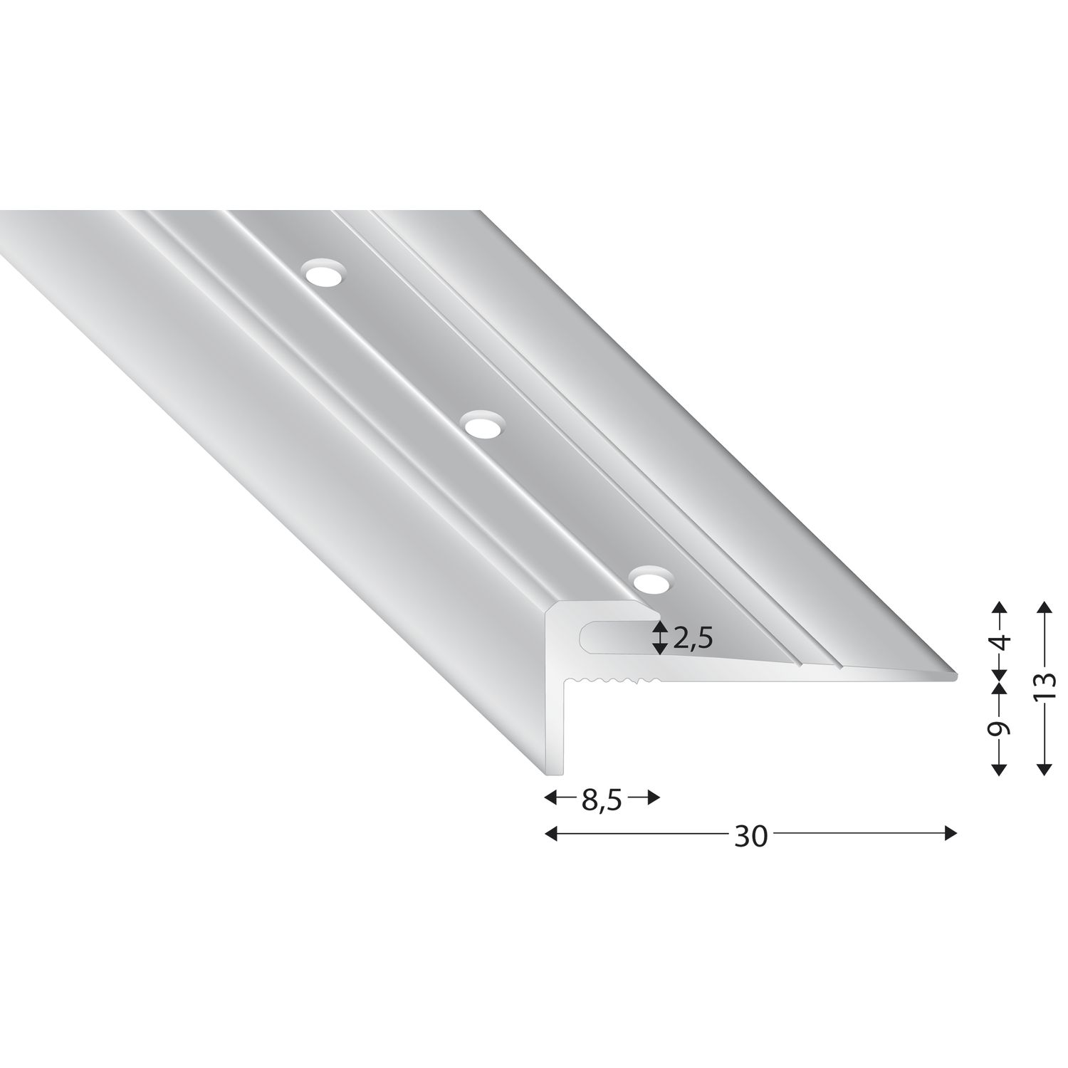 KÜGELE Treppenkantenprofil Alu silber eloxiert, 2,5 mm, 2700 mm