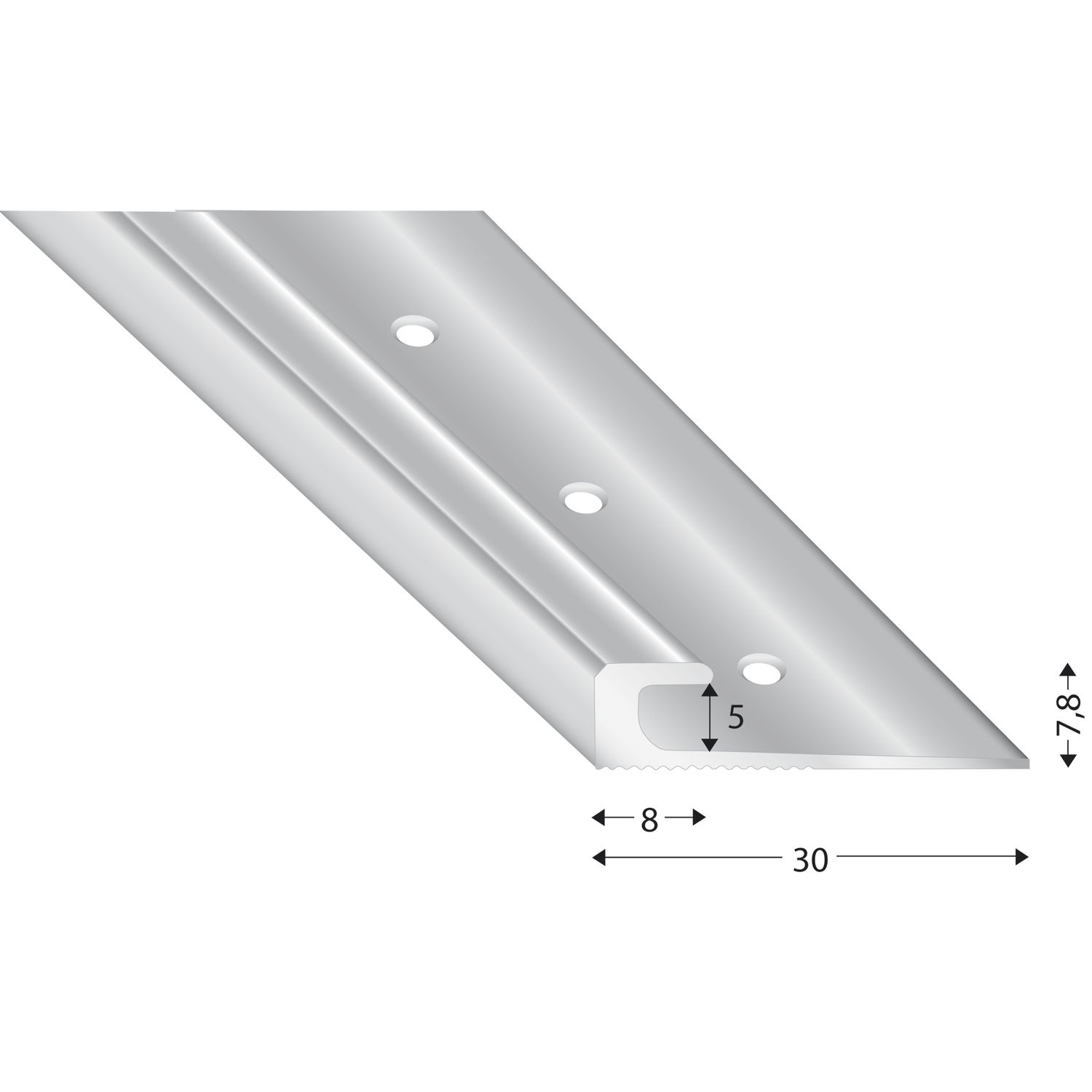 KÜGELE Abschlussprofil 201, Alu silber eloxiert, gebohrt, 15 mm, 2700 mm