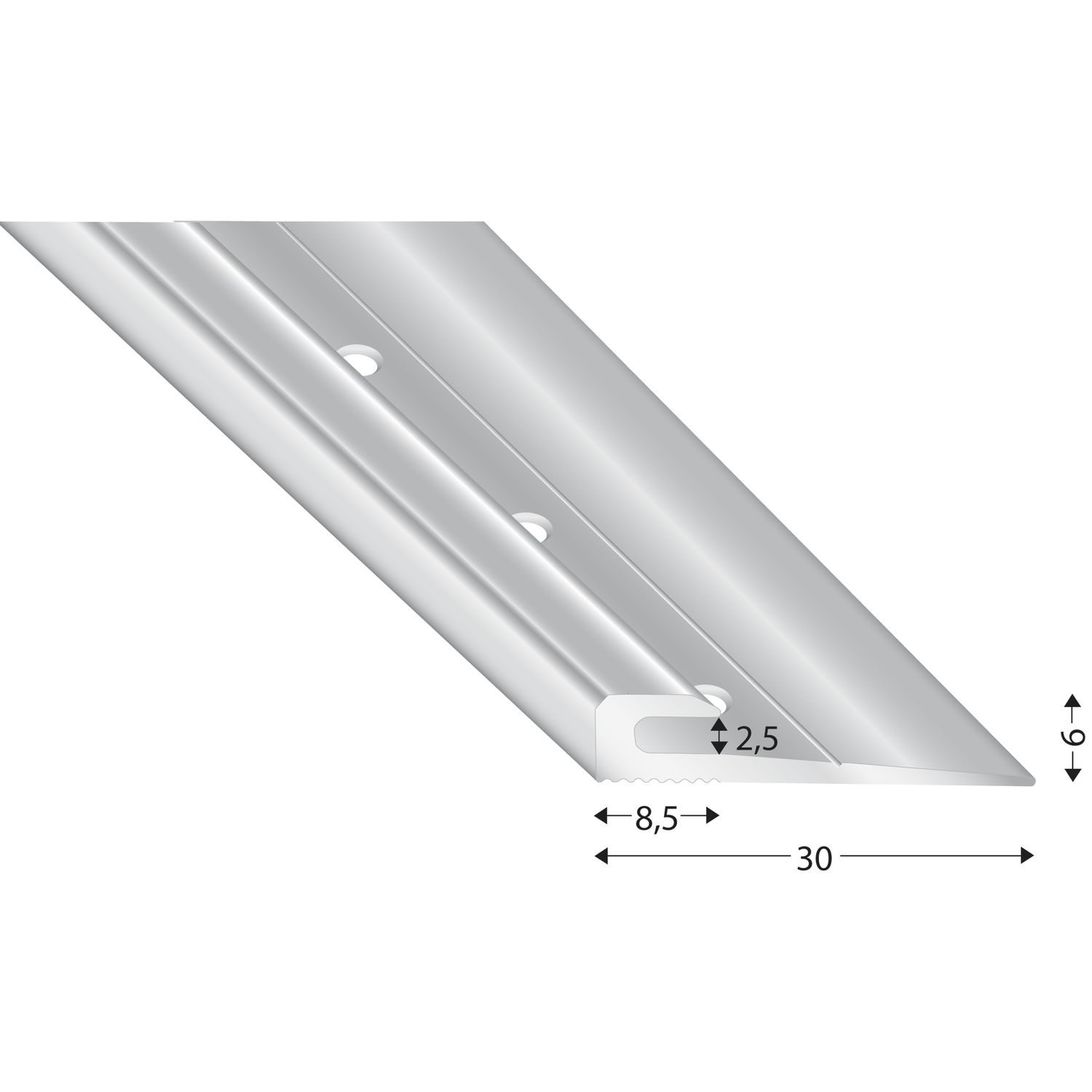 KÜGELE Abschlussprofil 201, Alu silber eloxiert, gebohrt, 10 mm, 2700 mm