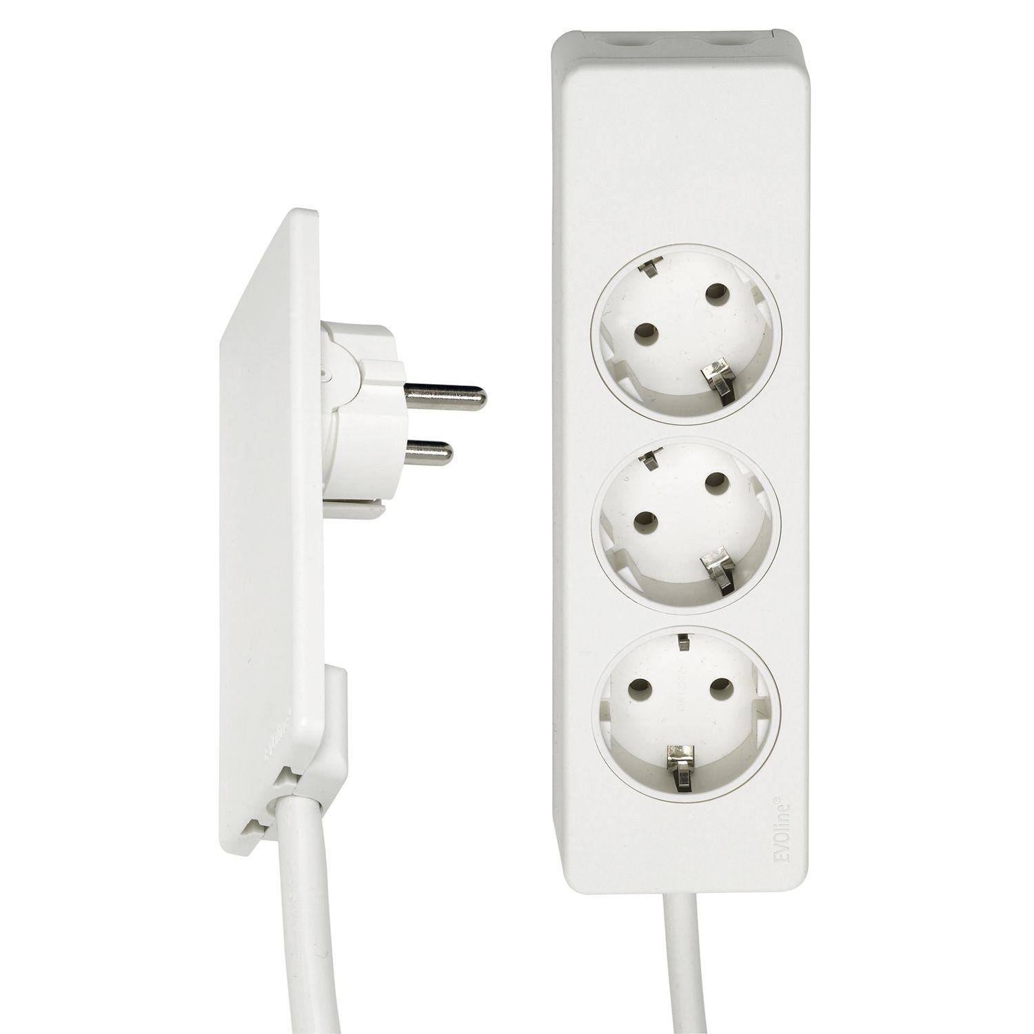 EVOline Plug-Verlängerungsleitung 1,5 m mit 3-fach Verteiler, Kunststoff weiß