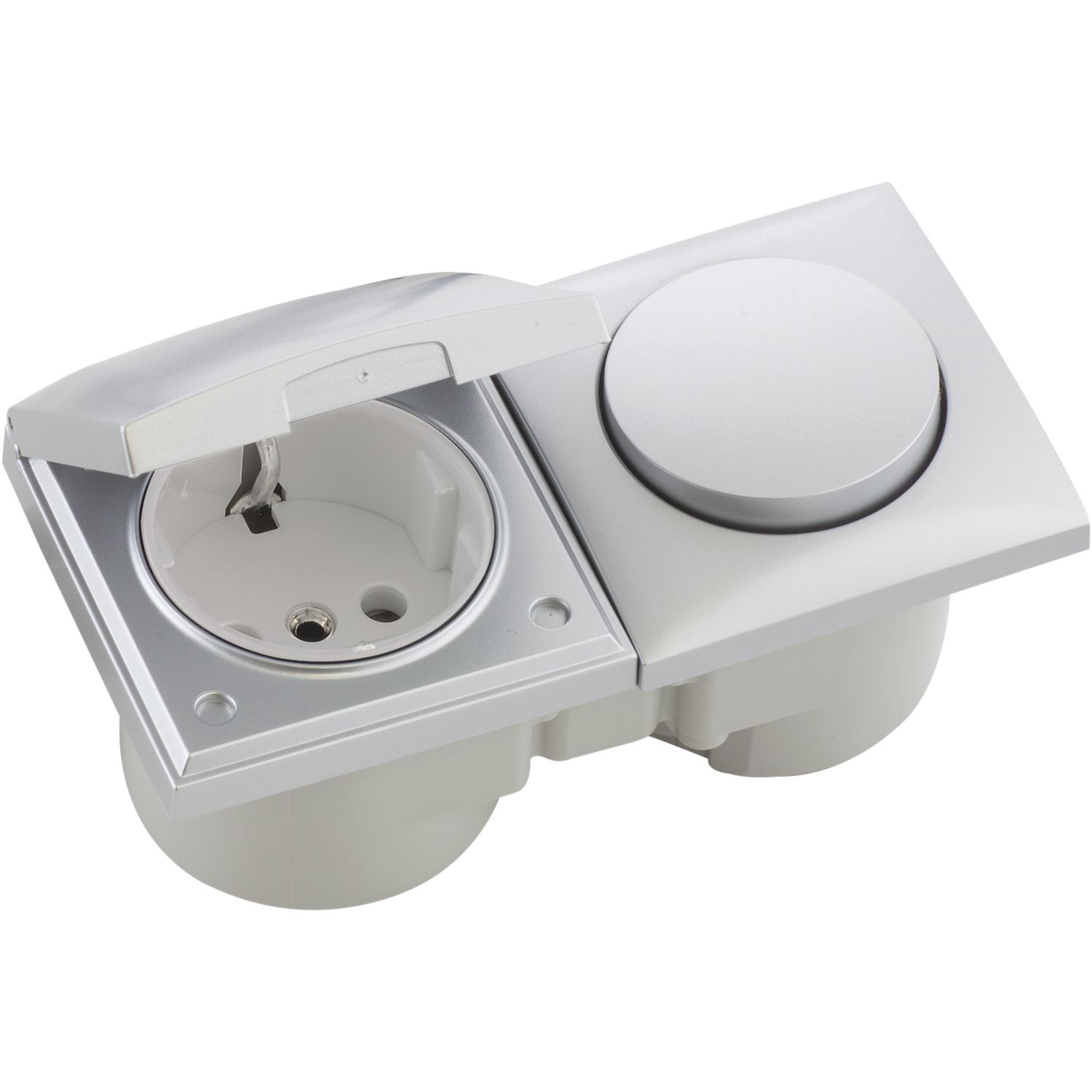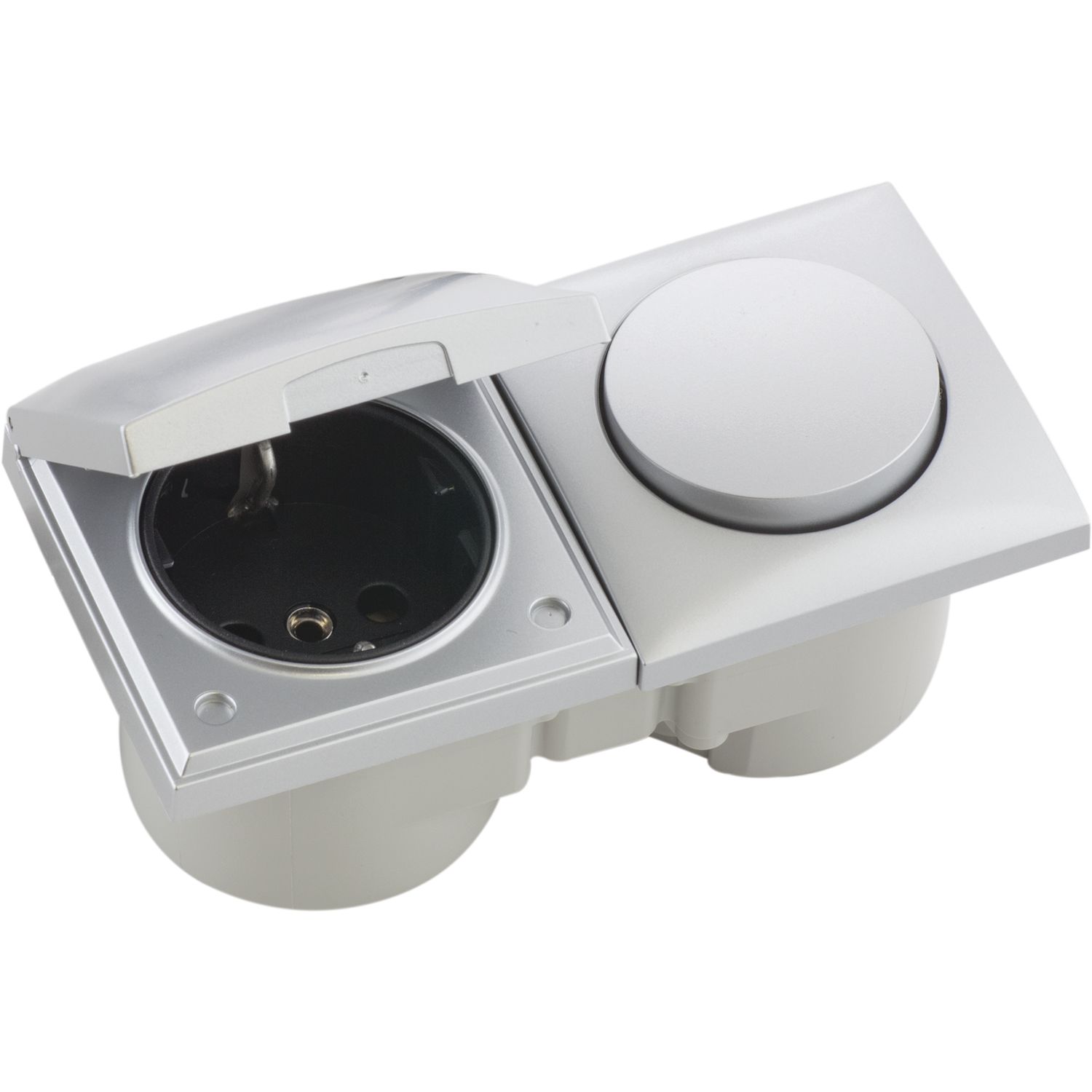 BERKER Integro Flow Schalter/Deckel chrom matt + Steckdose polarweiß