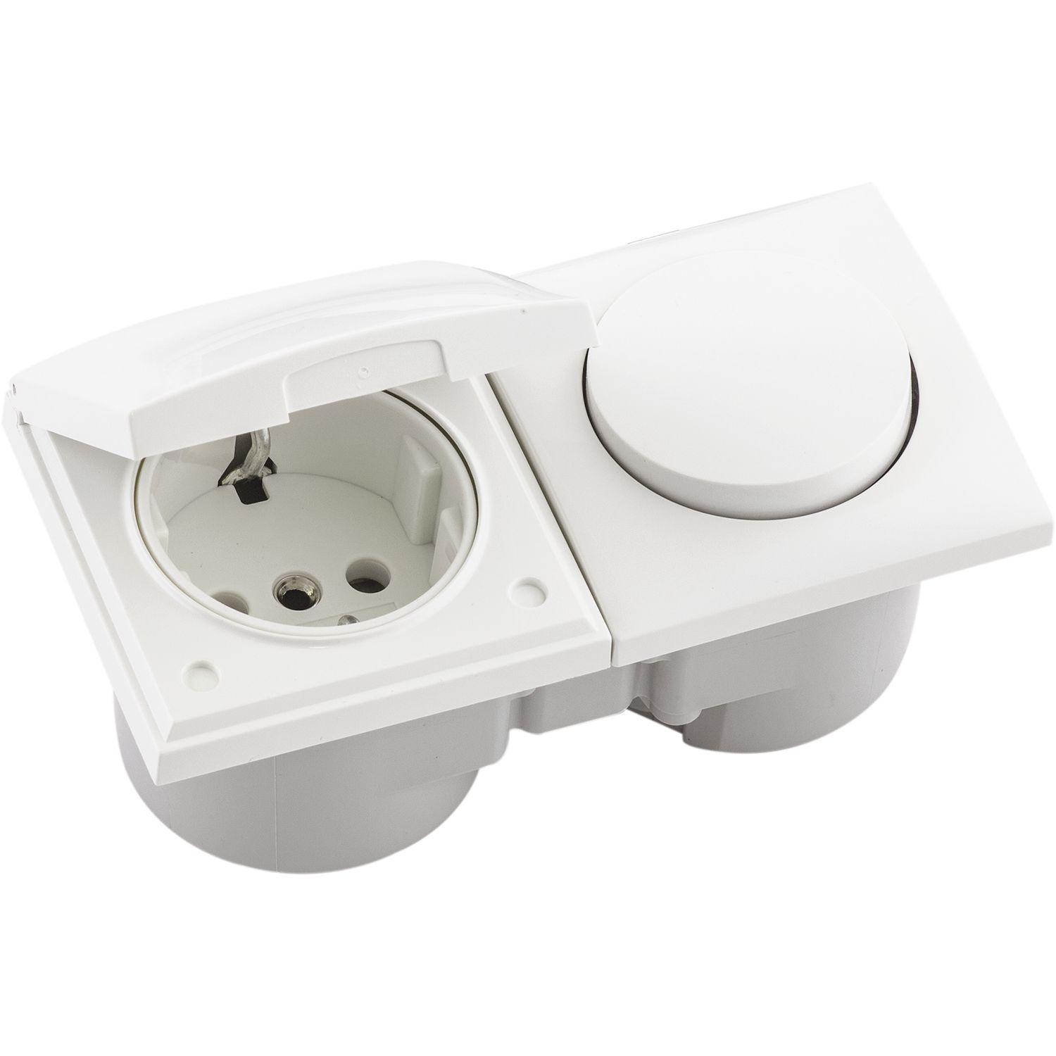 BERKER Integro Flow Schalter/Deckel polarweiß glänzend + Steckdose polarweiß