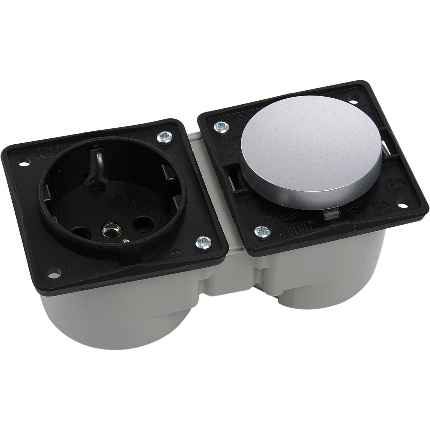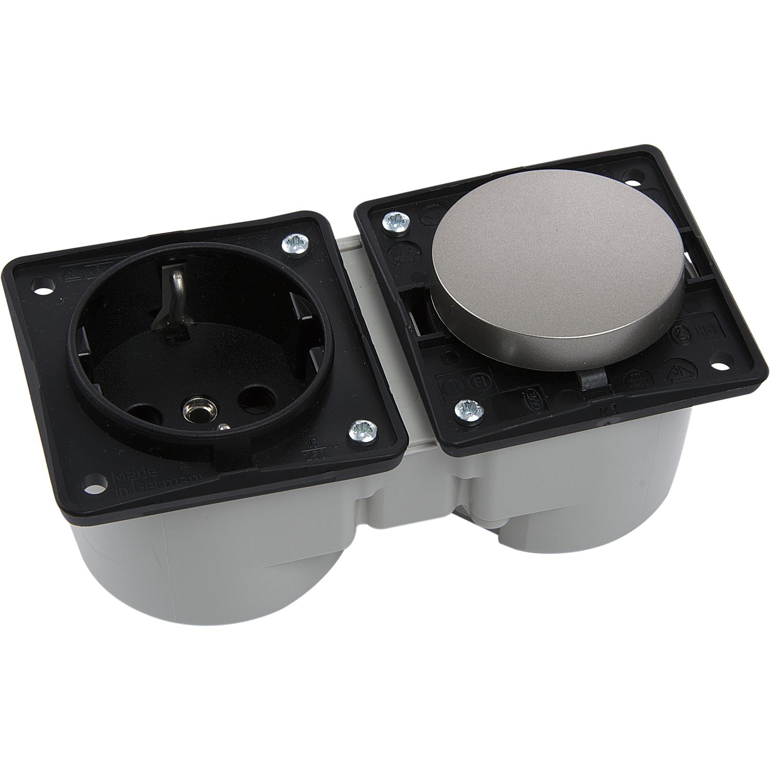 BERKER Integro Schalter Edelstahl Effekt + Steckdose schwarz ohne Rahmen