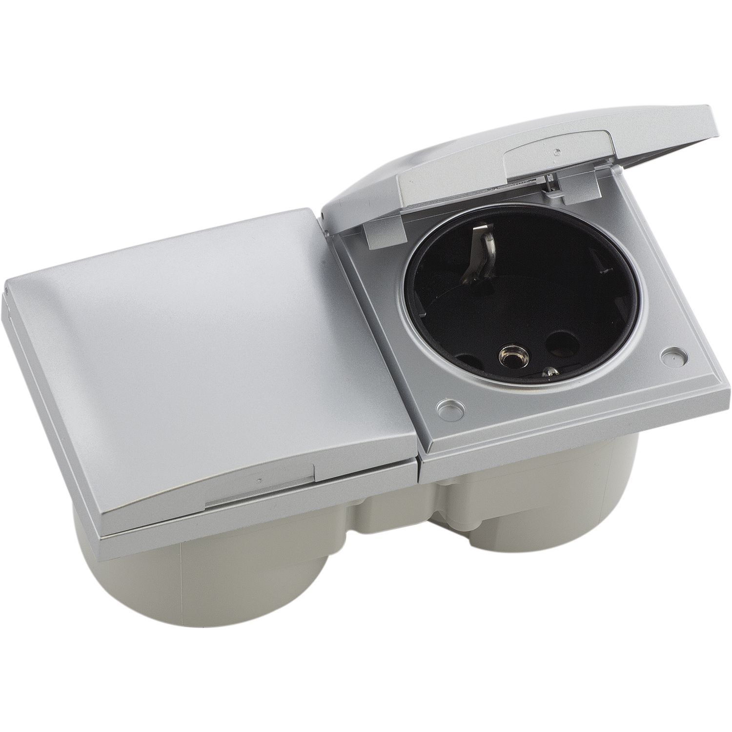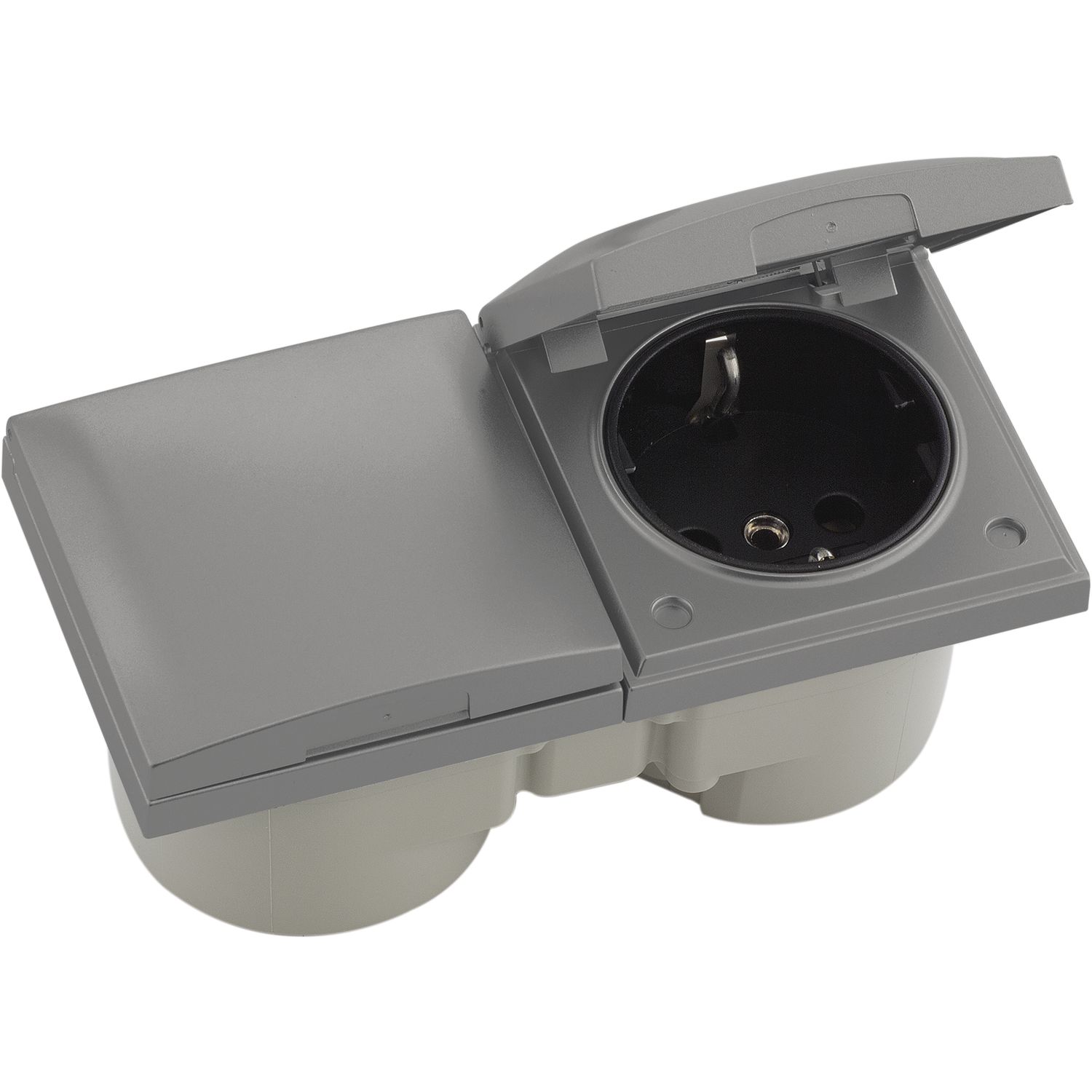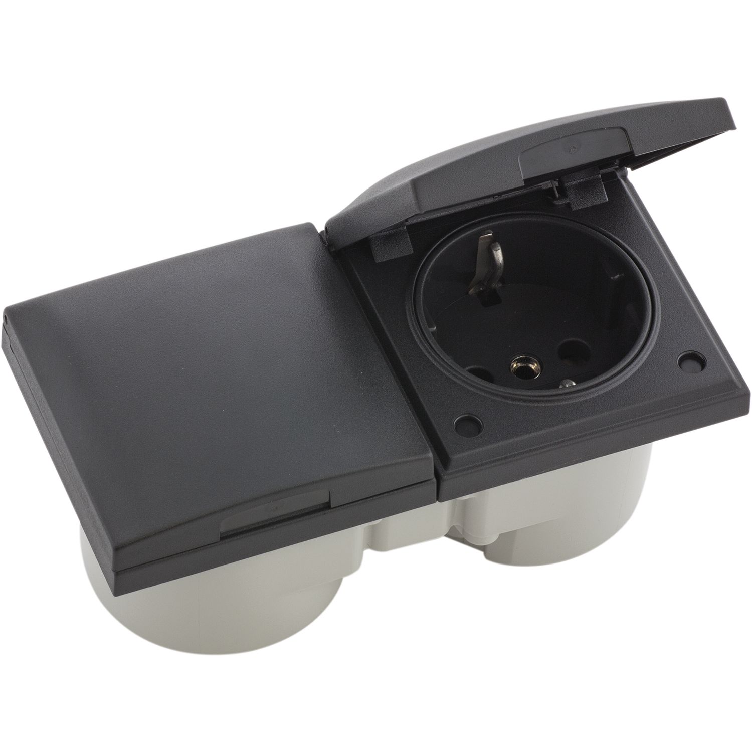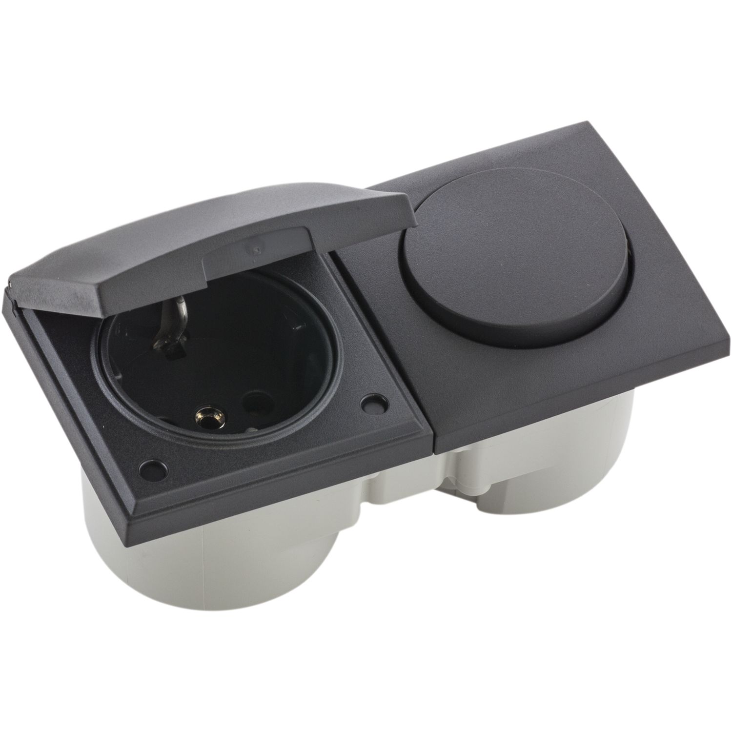 BERKER Integro Flow Doppelsteckdose, Deckel anthrazit, Steckdose anthrazit