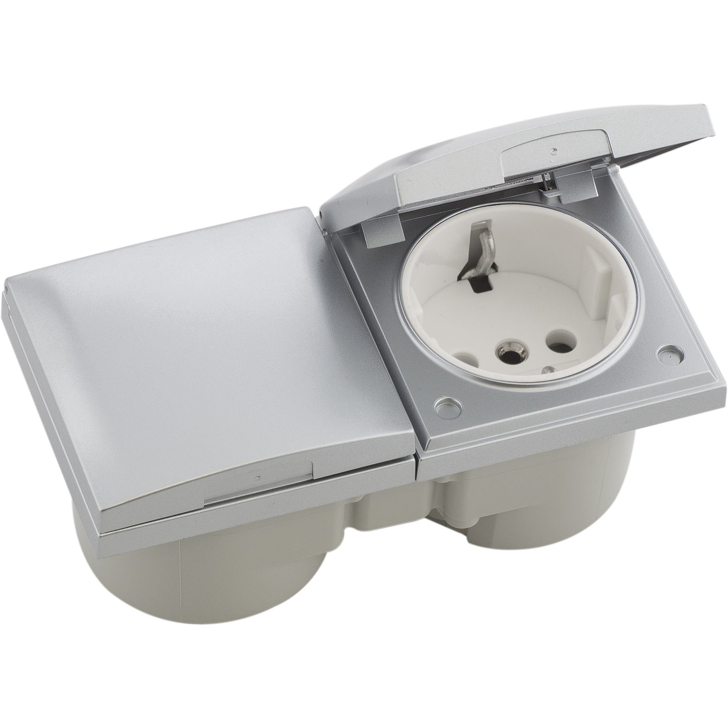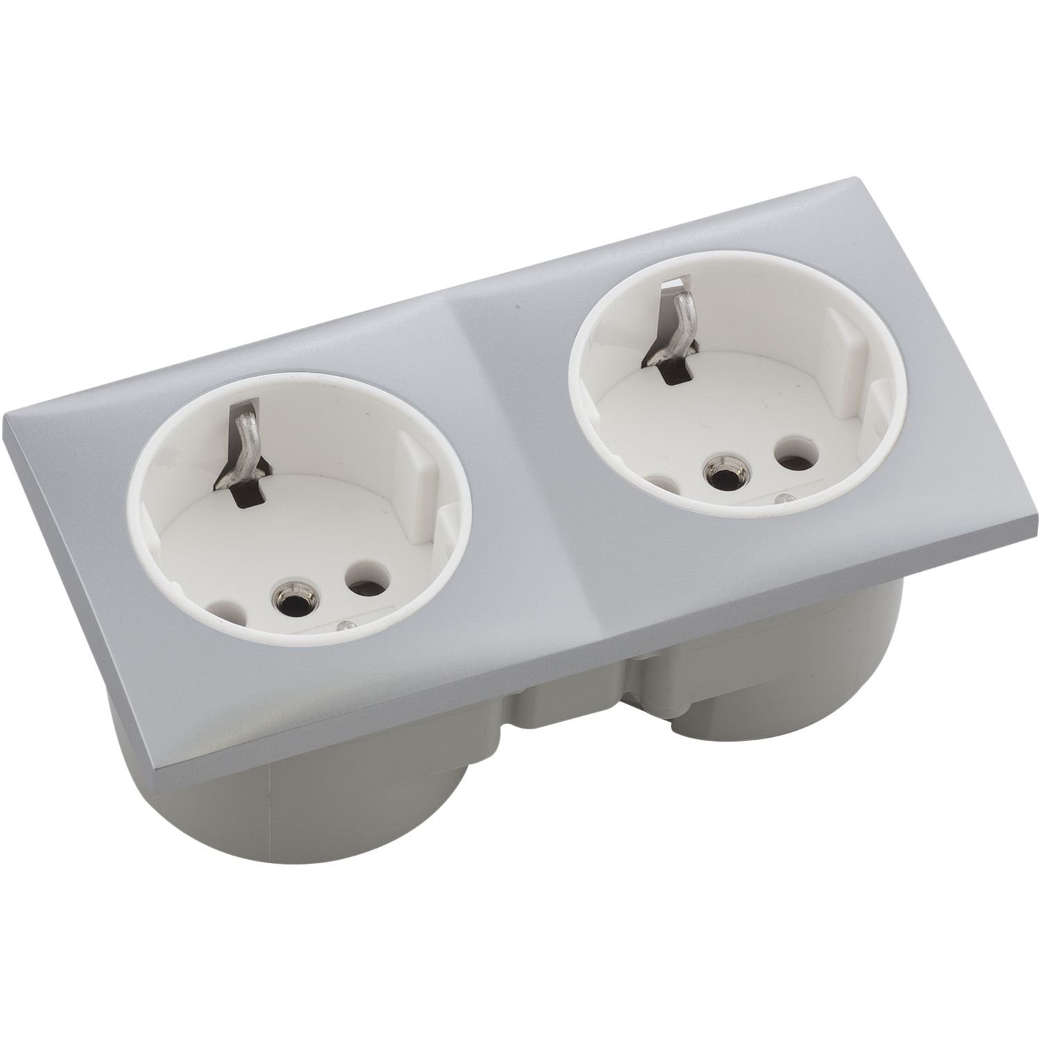 BERKER Integro Flow Doppelsteckdose, Deckel chrom matt, Steckdose weiß