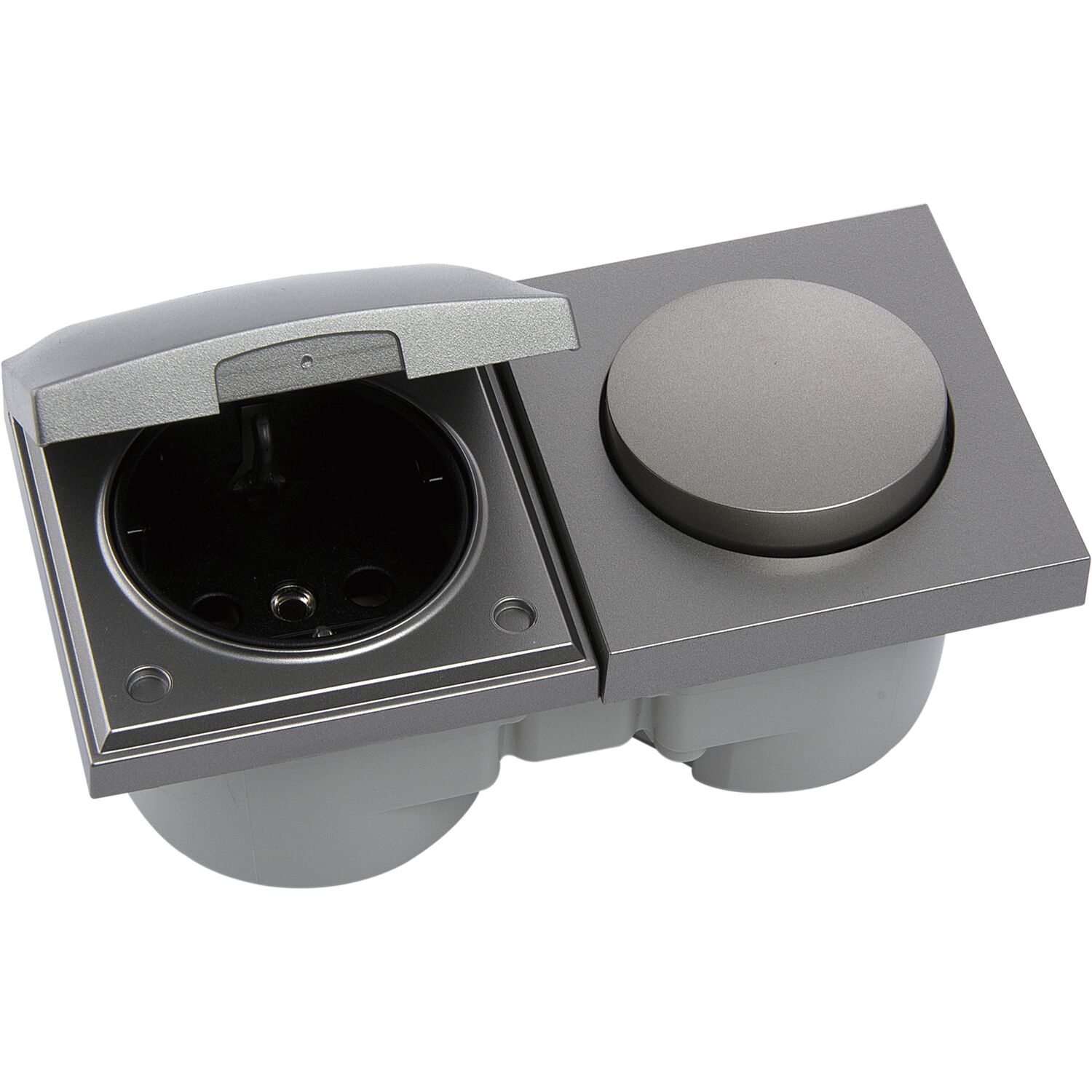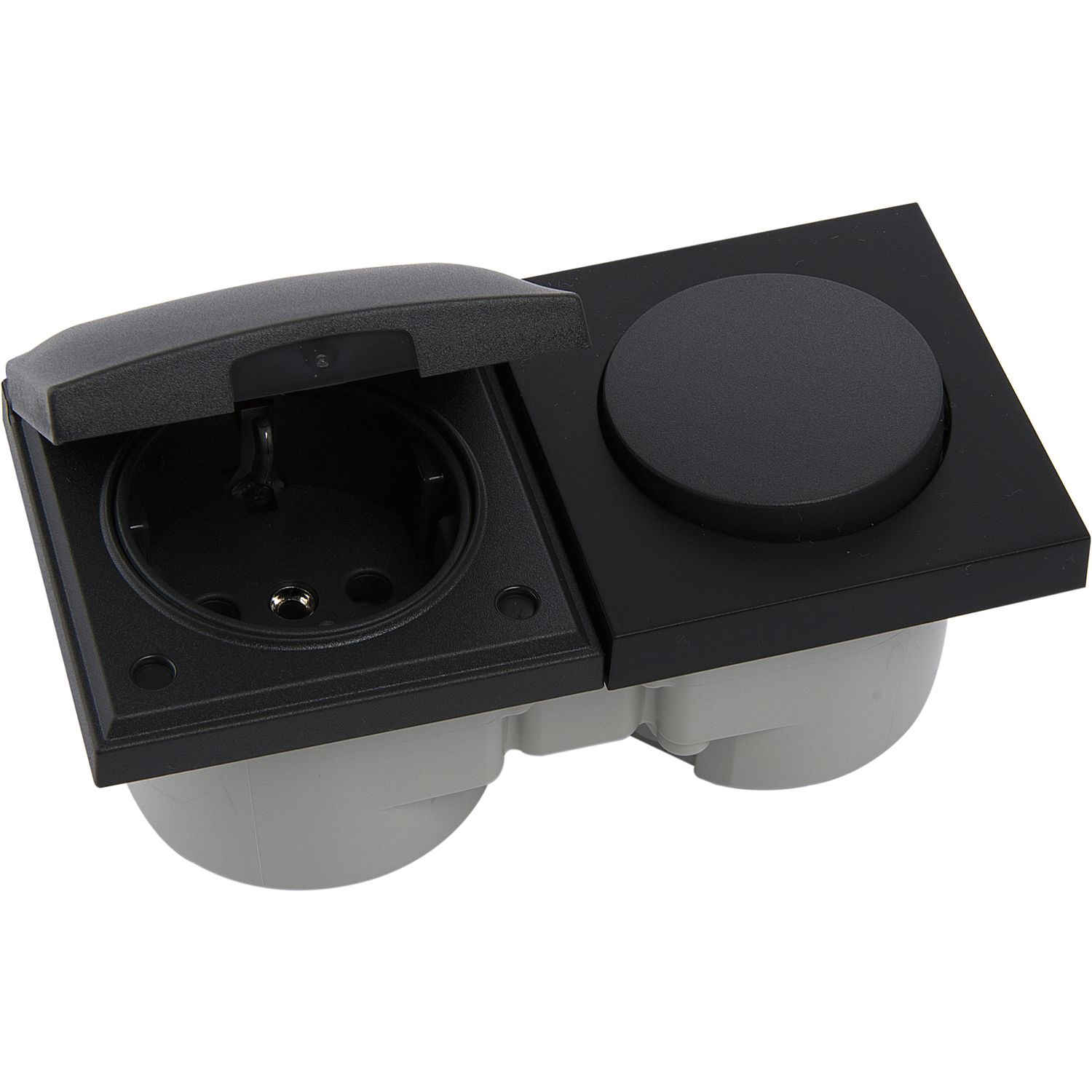 BERKER Integro Flow Schalter/Deckel anthrazit + Steckdose anthrazit