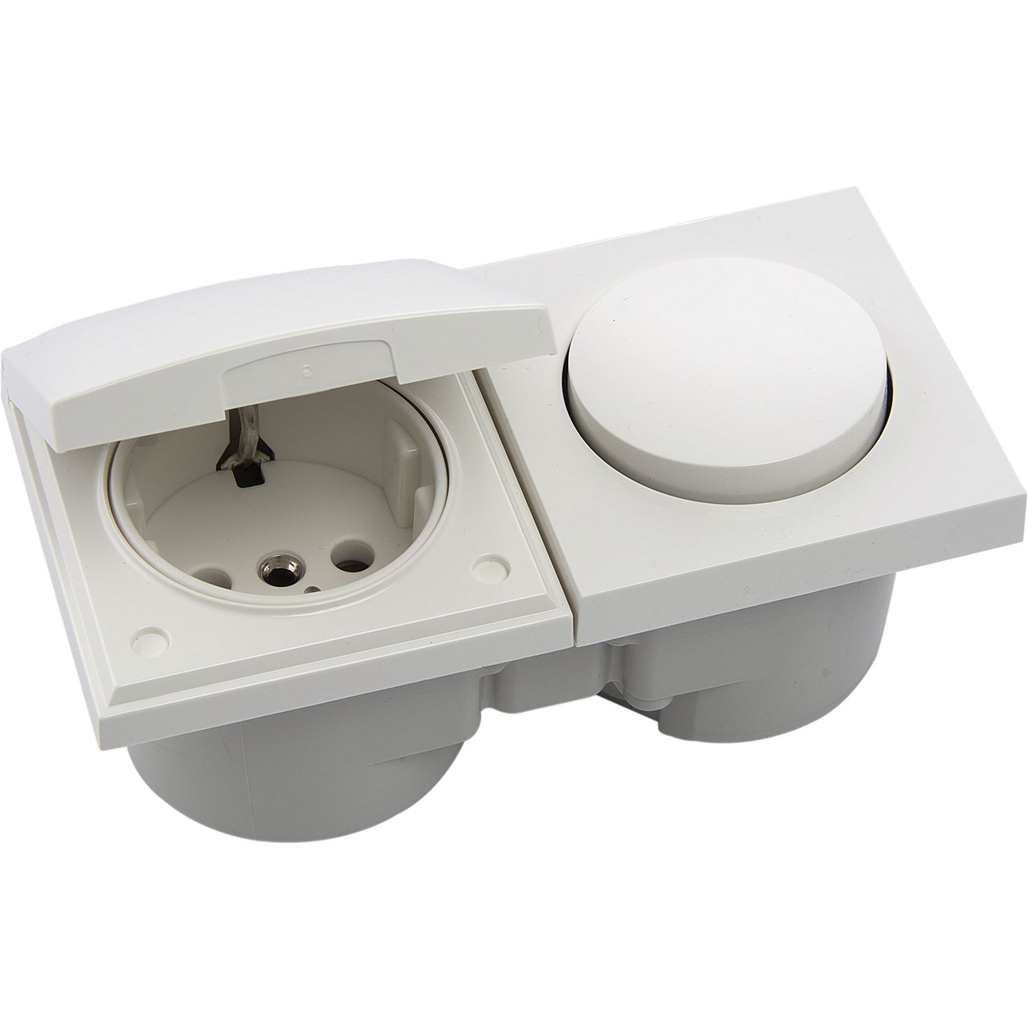 BERKER Integro Pure Schalter/Deckel polarweiß glänzend + Steckdose polarweiß