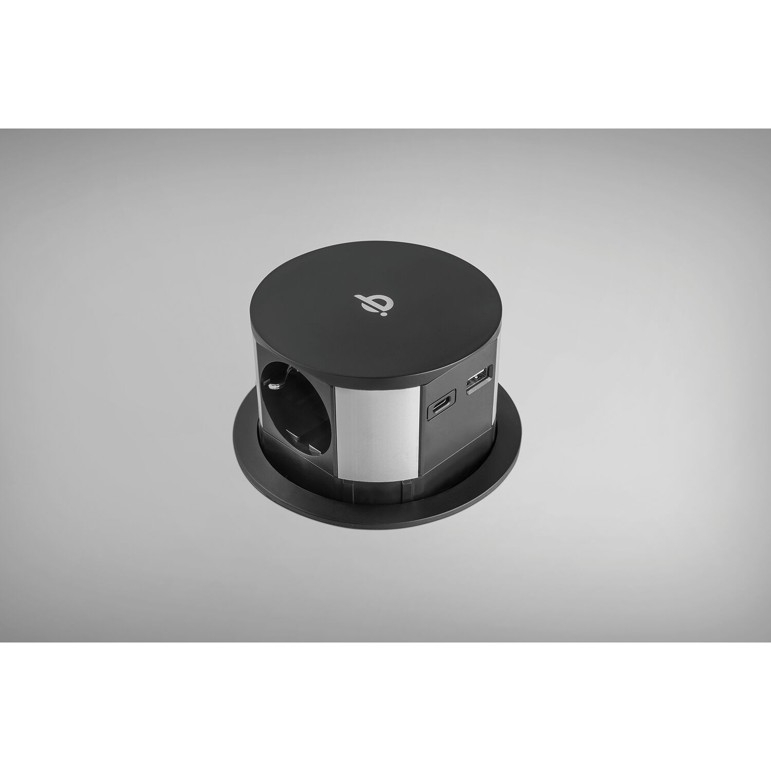 EKOTECH Steckdose ET-111-E 3xSchuko, USB A+C-Charger, QI-Charger, schwarz
