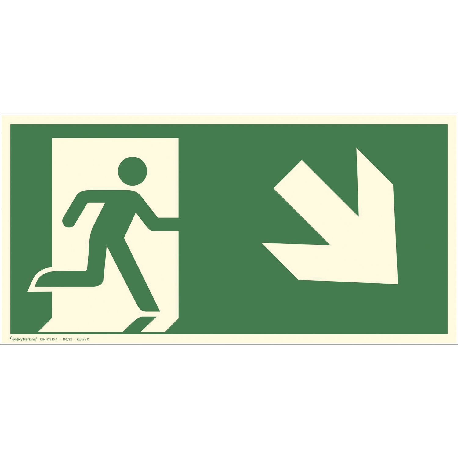 Fluchtwegschild Notausgang Symbol rechts abwärts 300 x 150 mm