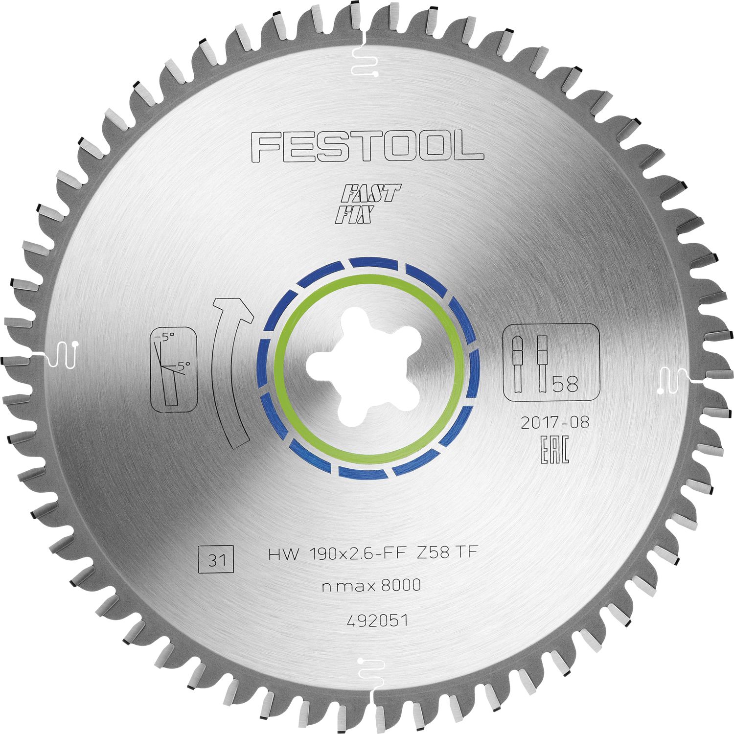 FESTOOL Spezial-Sägeblatt 190x2,6 mm FastFix Aufnahme Z58 TF neg.