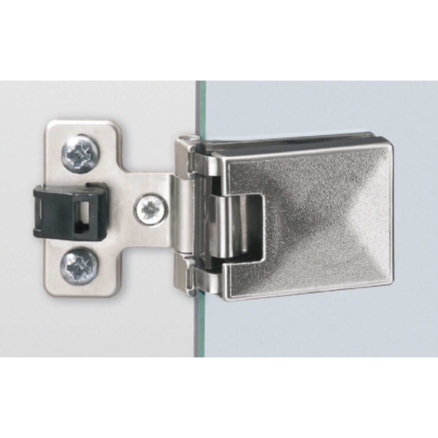 HETTICH Glastürscharnier ET 5160 Set, Glas bis 6,3 mm; 43x30 mm, Zink vern. matt