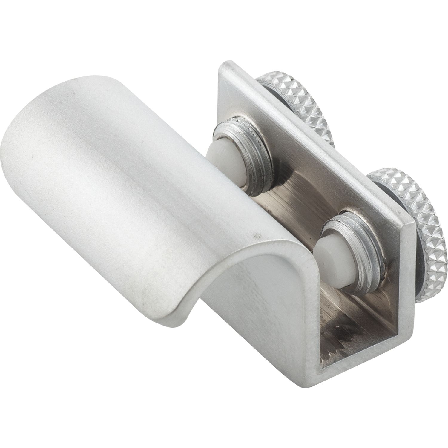 Glastablar-Klemmträger Zylinder B, Glasstärke 8-10 mm, Messing verchromt matt