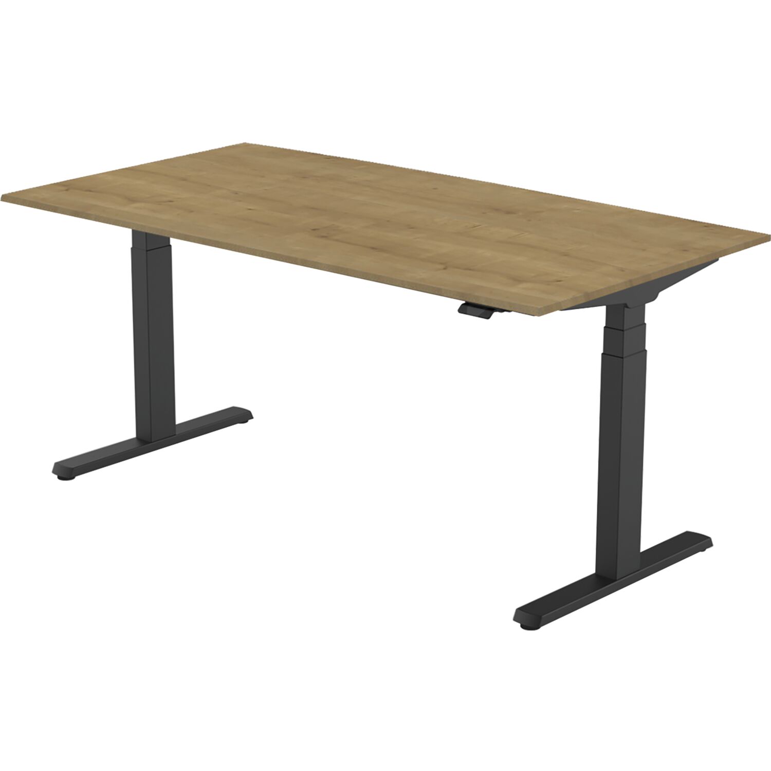 Bürotisch Evo, elektrisch verstellbar, schwarz, Platte 1600x800 Eiche Natur