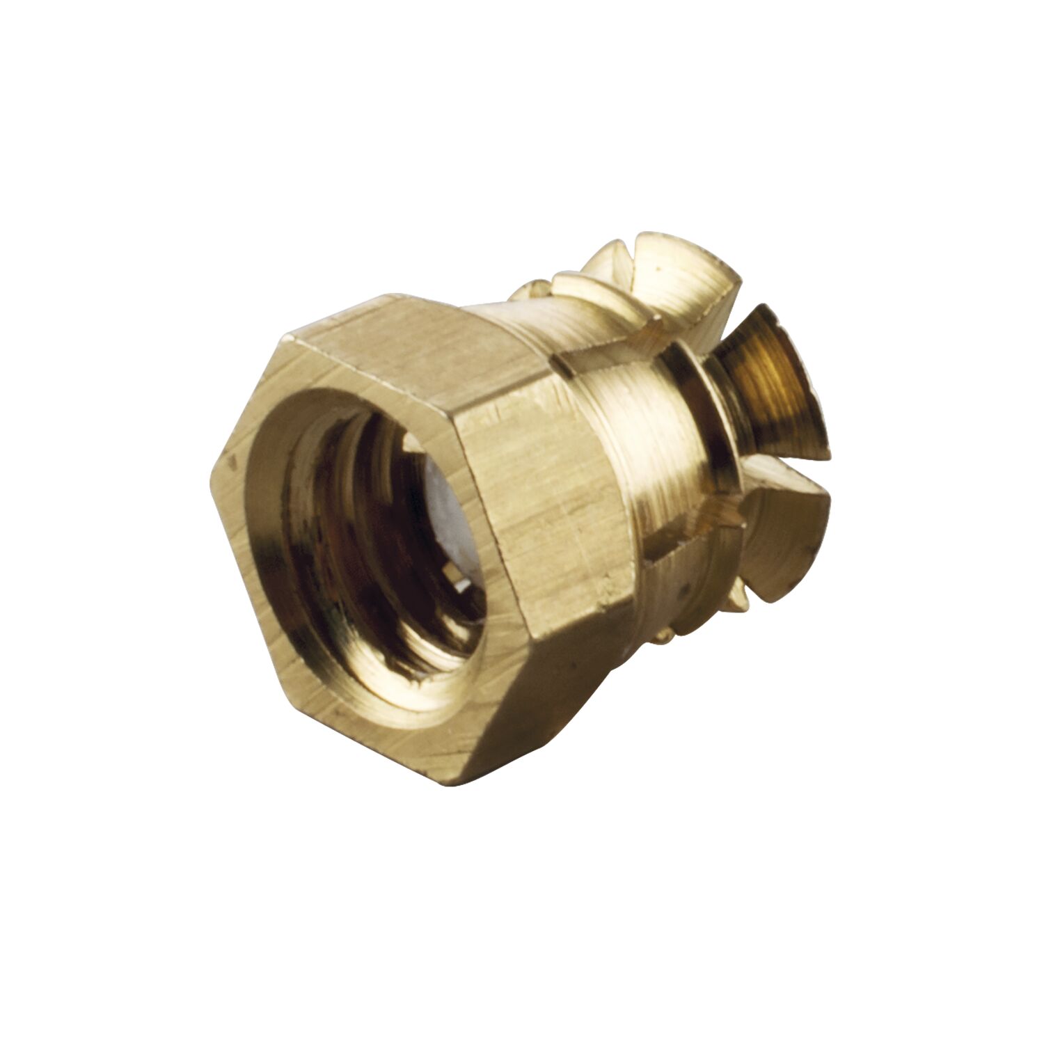 Spreizmuffe sechskant, M6 Länge 9 mm, Bohr ø8 mm, Messing blank