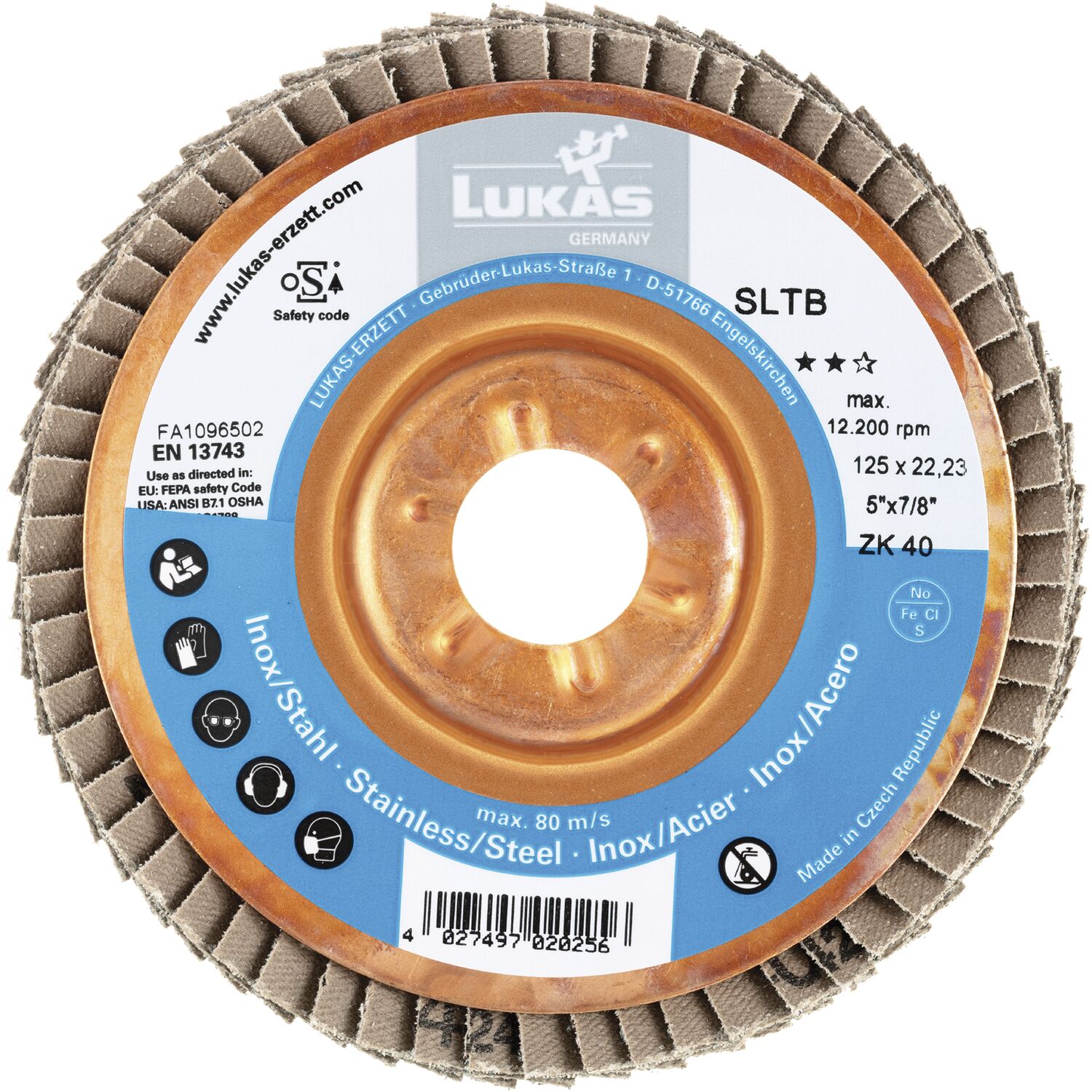 LUKAS Schleiflamellenteller SLTB Zirkonkorund ø 125 mm Korn 80