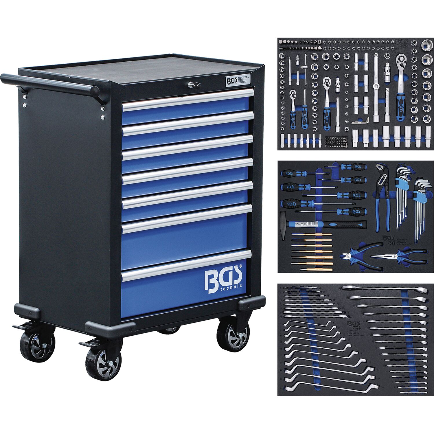 BGS Werkzeugwagen 994 x 699 x 458 mm 263-teilig 7 Schubladen
