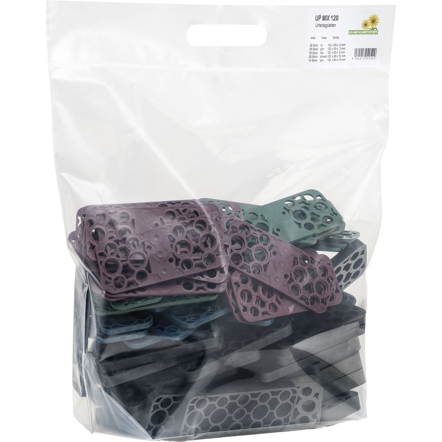 GV Beutel Unterlegplatte 120x50mm, 110 Stk. sortiert