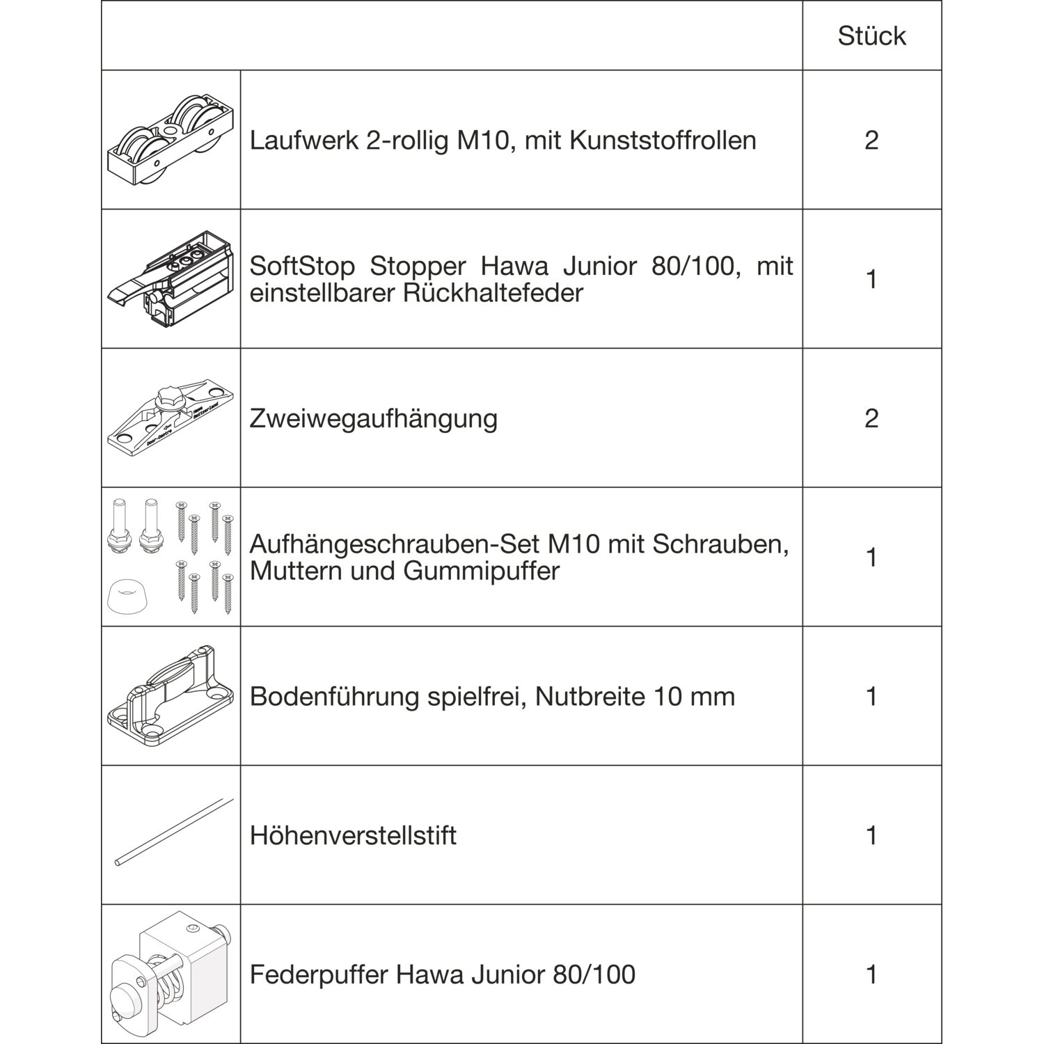 HAWA Junior 100/Z-Pocket Beschlagset Holz 1 Fangstopper Standard/Federpuffer
