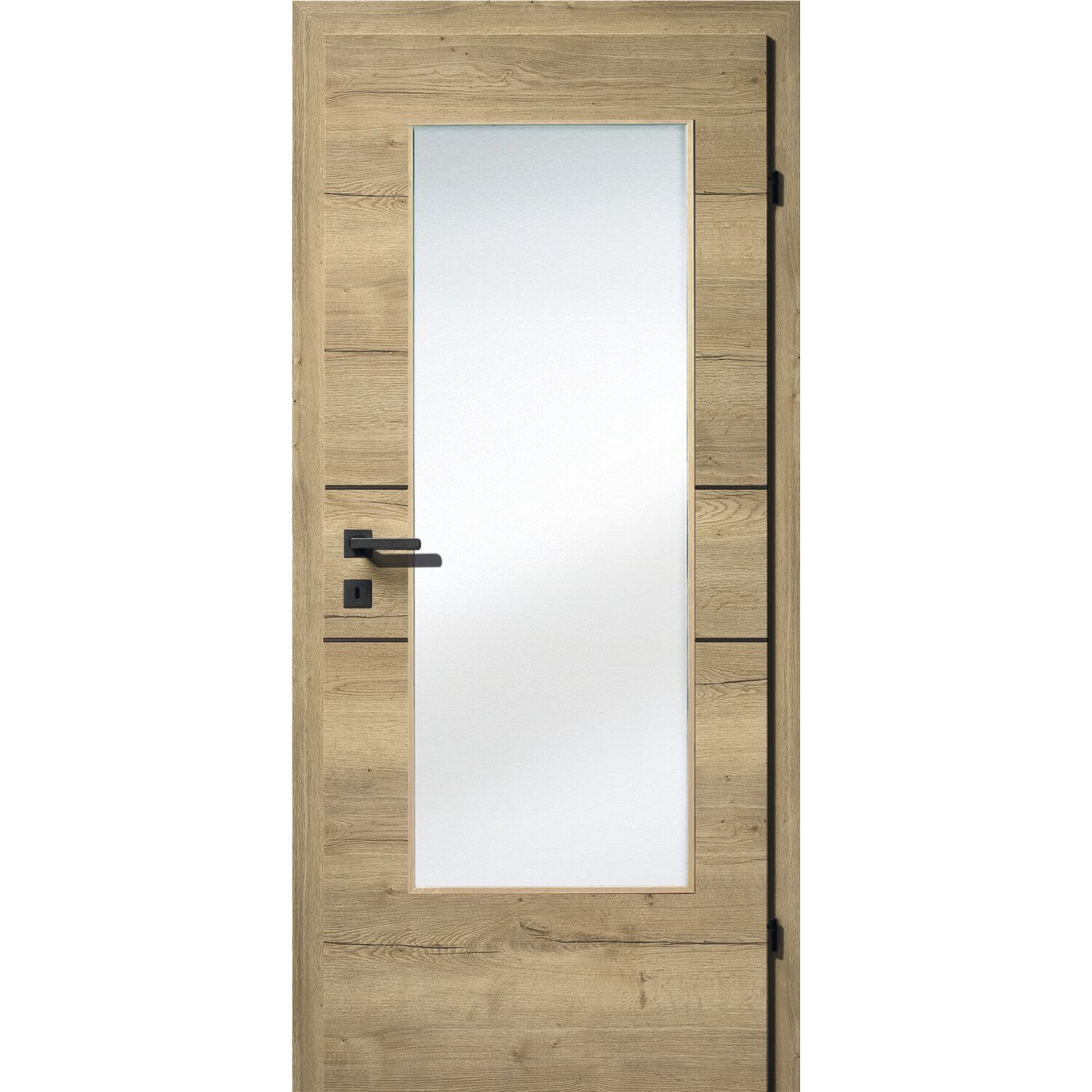SOLIDO Smart Innentüre CPL Ripped Eiche 4 Lisenen schwarz GL RE TBA 800/2030mm