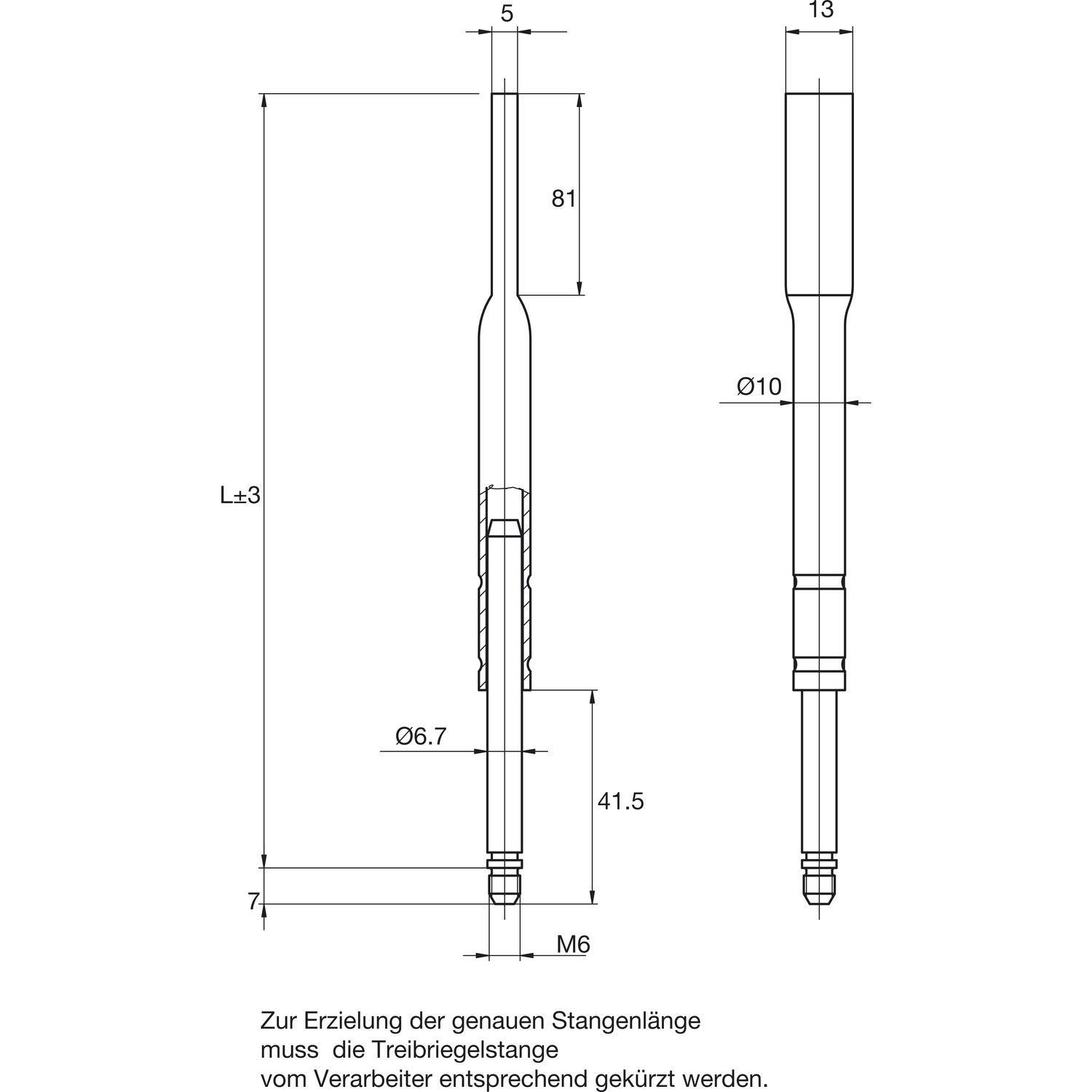 BKS Drückerstift geteilt 78430, LI 30 x LA 70 mm, VK 9 mm, Stahl verzinkt