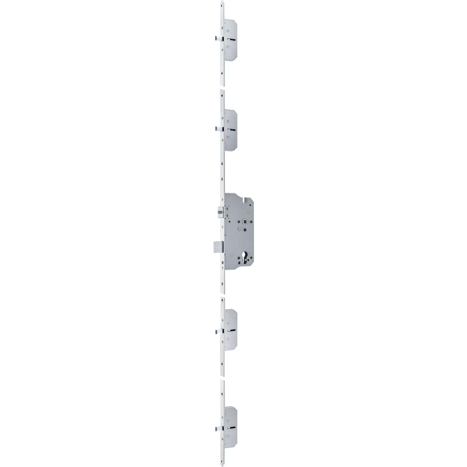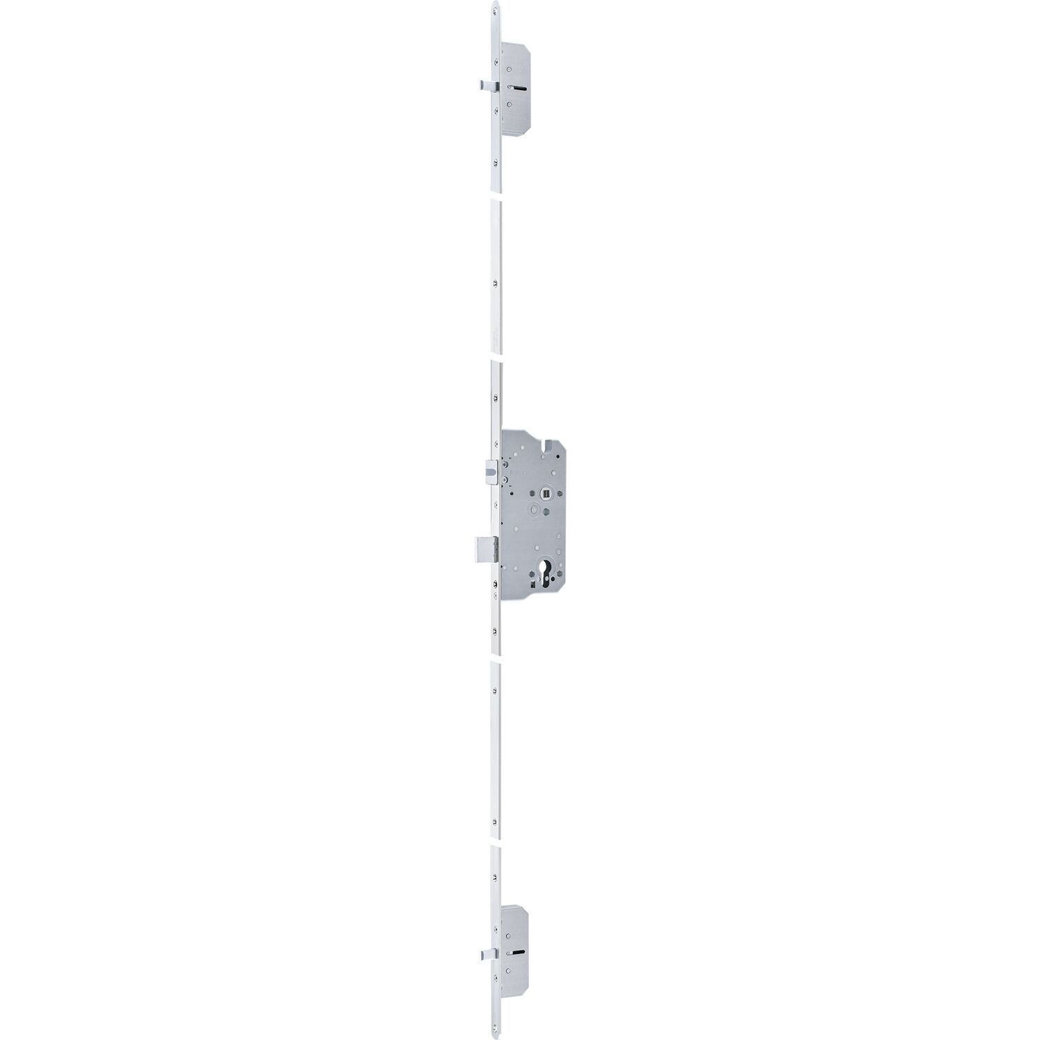 MFV-Schloss 124-MF4/Cerbero für Rundbogentüren, DM 70 mm, PZ 88 mm, silberfärbig