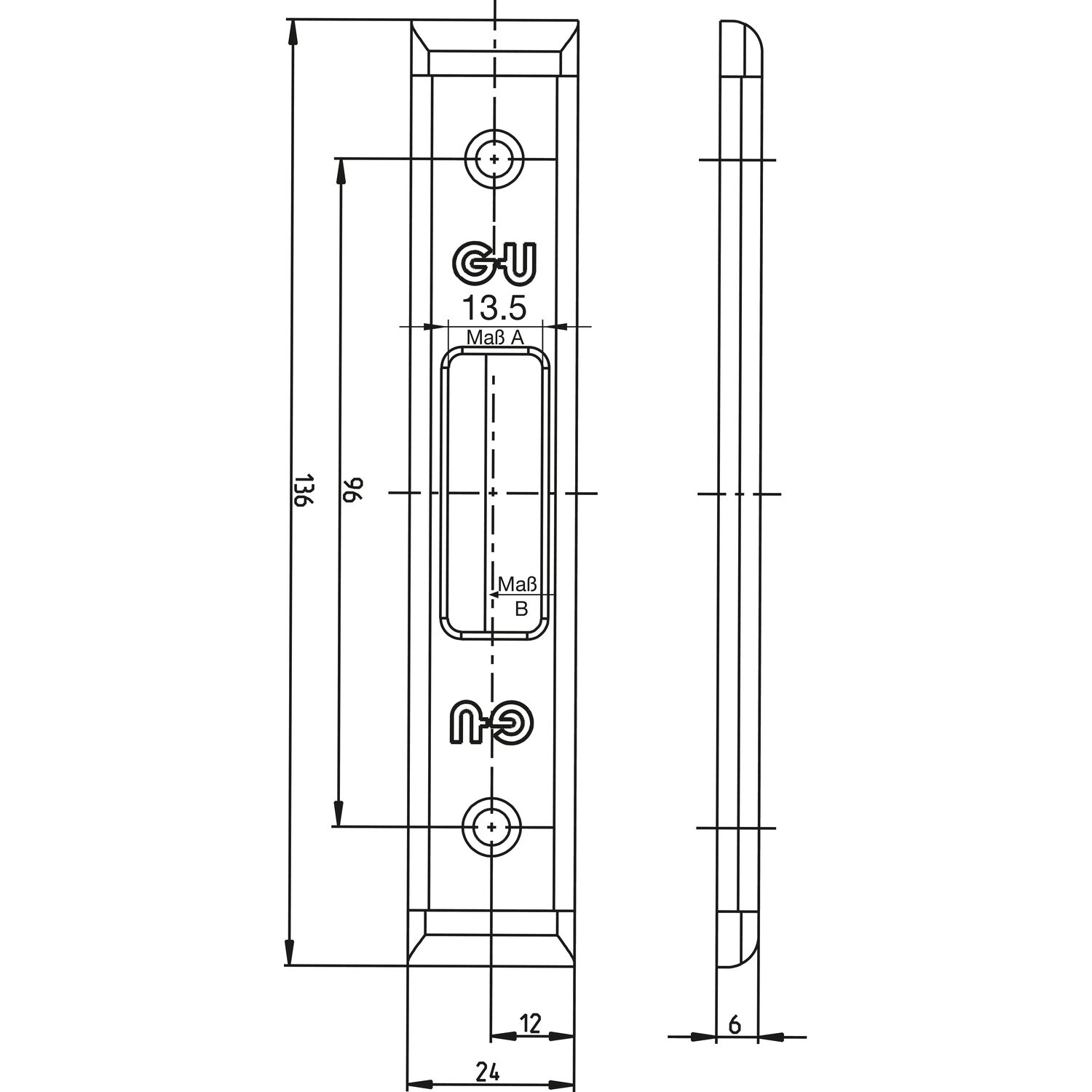 BKS Schließblech für MFV Secury Hauptfalle 1-flg, U-Stulp 24 x 6 x 120,Edelstahl