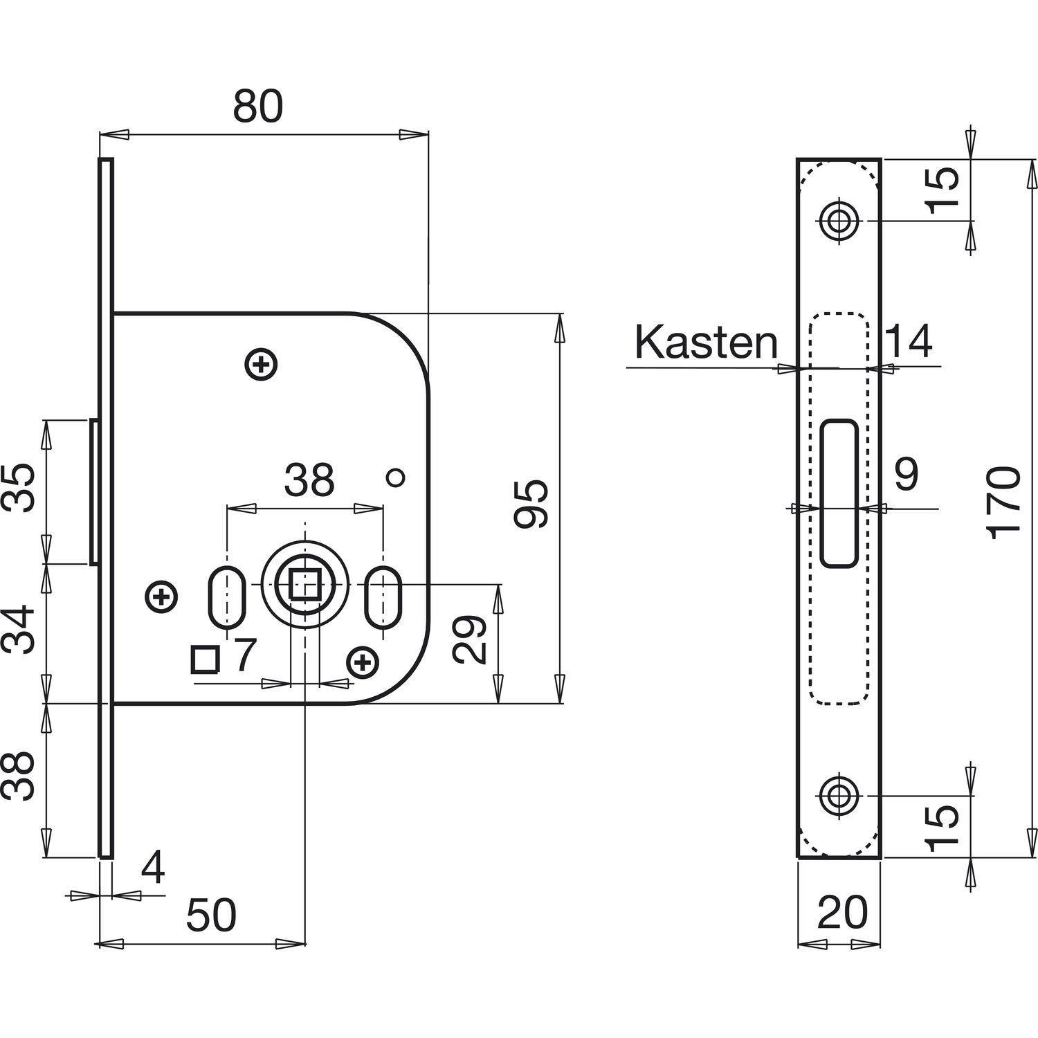 BMH Einstemmschloss PZW, rechts, Dorn 55, Stahl silber lackiert