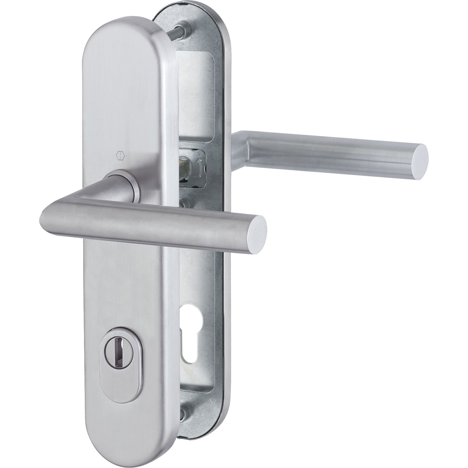 SH-Drückergarnitur PARIS-auf LS PZ88, 67-72, ohne Kzs., Edst matt,53 x 249 x 10