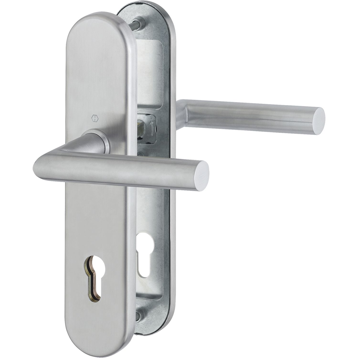SH-Drückergarnitur PARIS-auf LS PZ88, 62-72, mit Kzs., Edelstahl matt