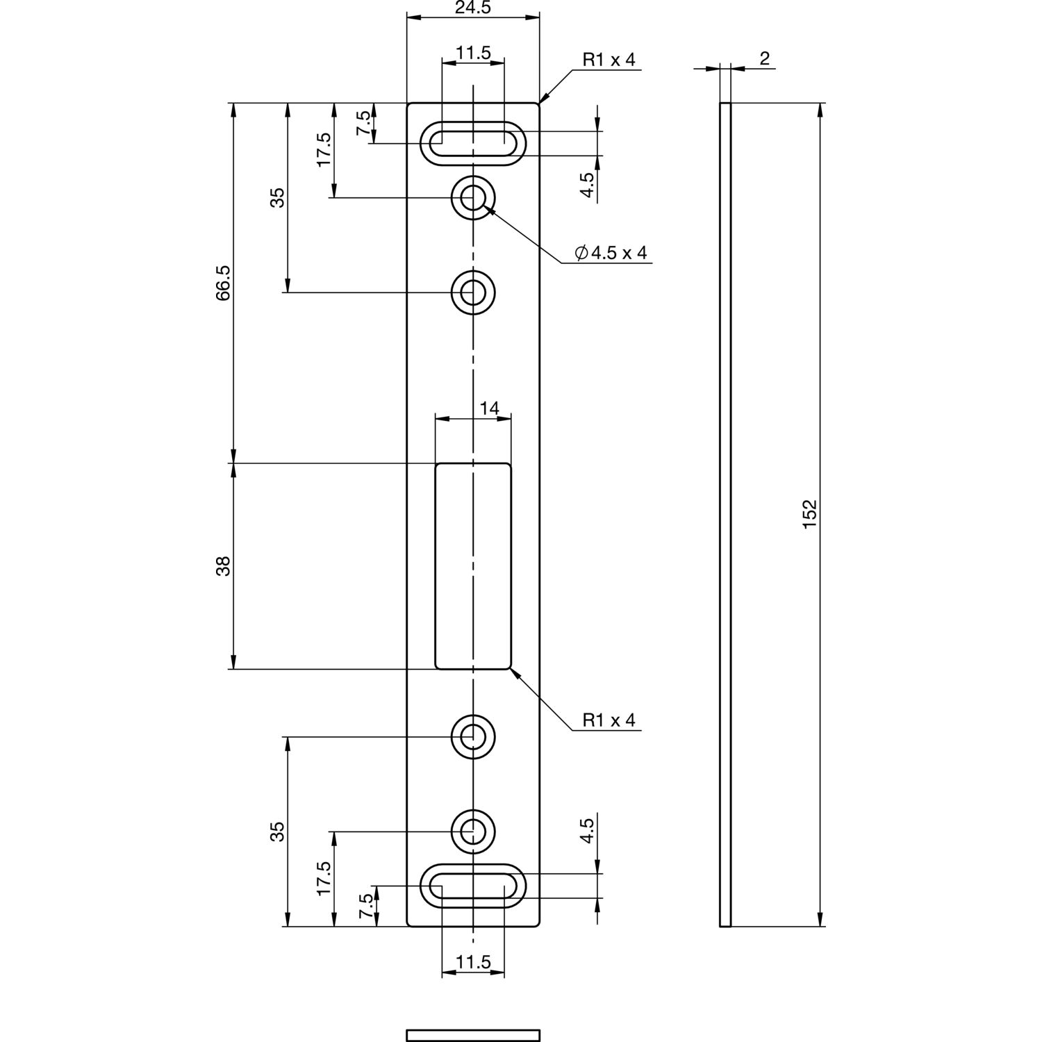 Schließblech EA 306 für Elektro-Mehrfachverriegelungsschlösser, 152x24,5x2 mm