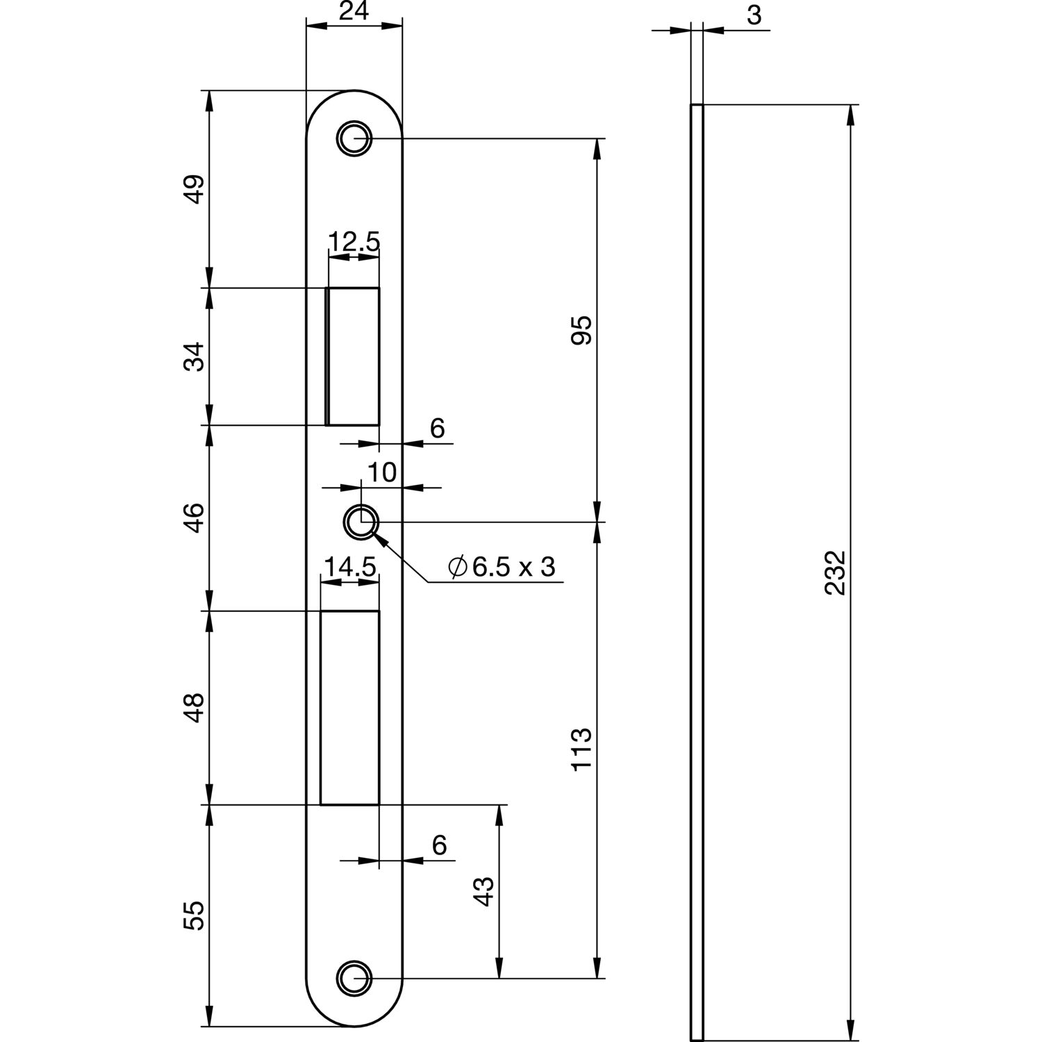 Schließblech EA 325 für Elektro-Mehrfachverriegelungsschlösser, 232x24x3 mm