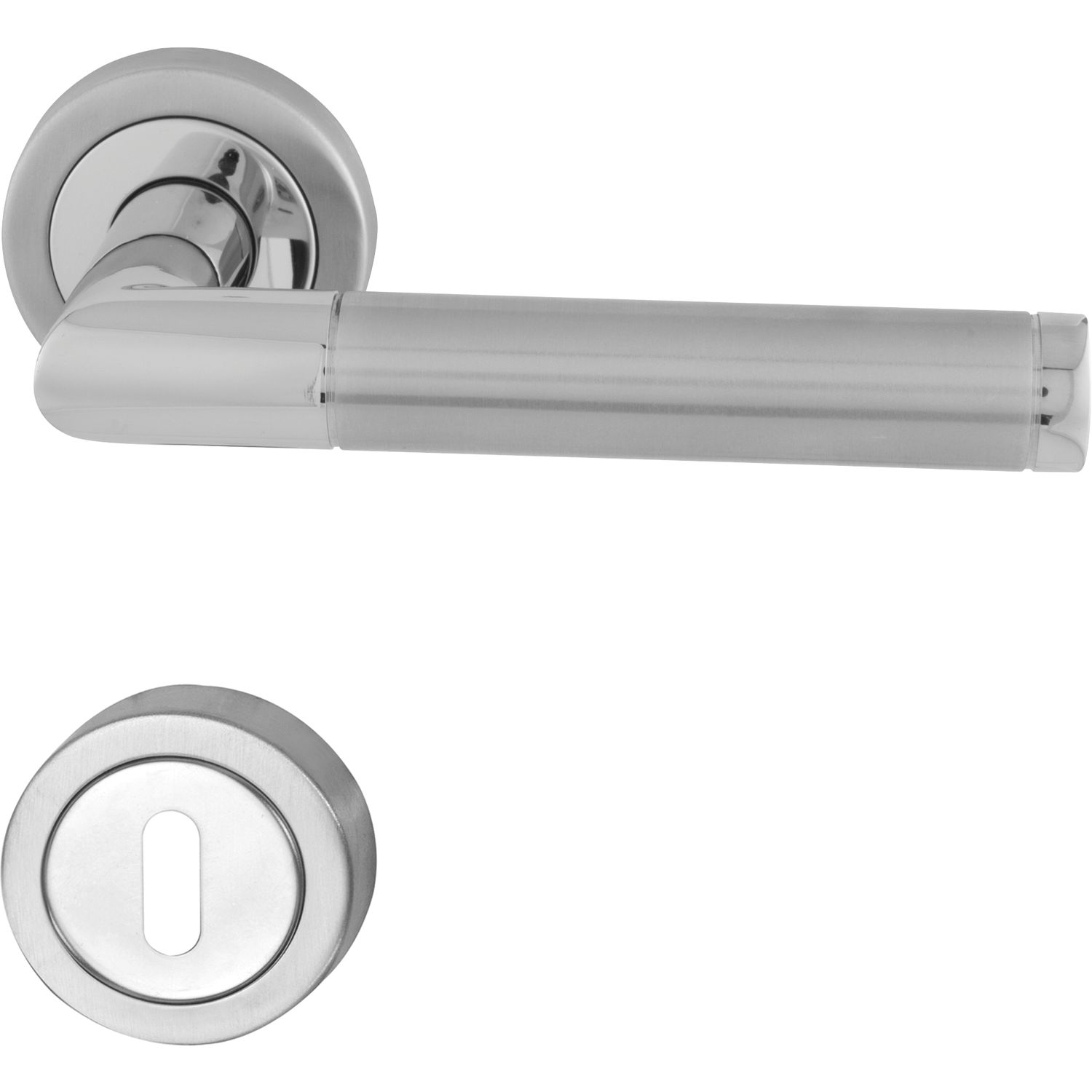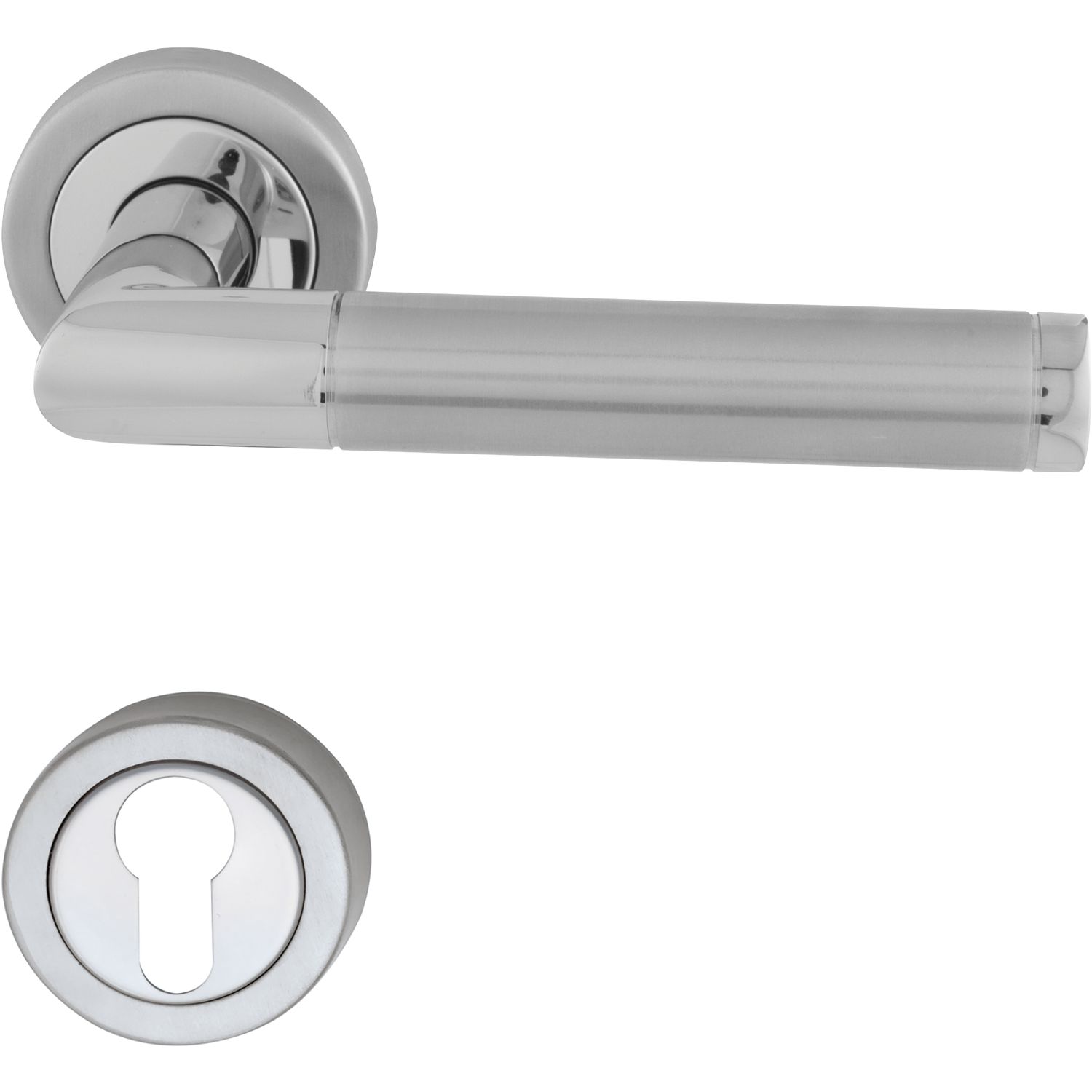 MARCHESI Drückergarnitur SPLIT - auf Rosette PZ, verchromt/Edelstahl matt