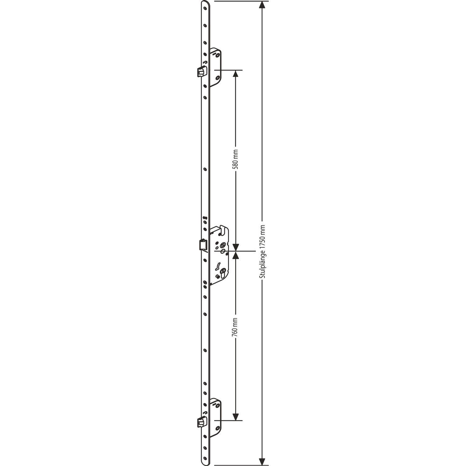 GU MFV-Schloss Secury Automatic ÖNORM,DM 55,Stulp 1750 x 16 x 2,5mm eckig,silber