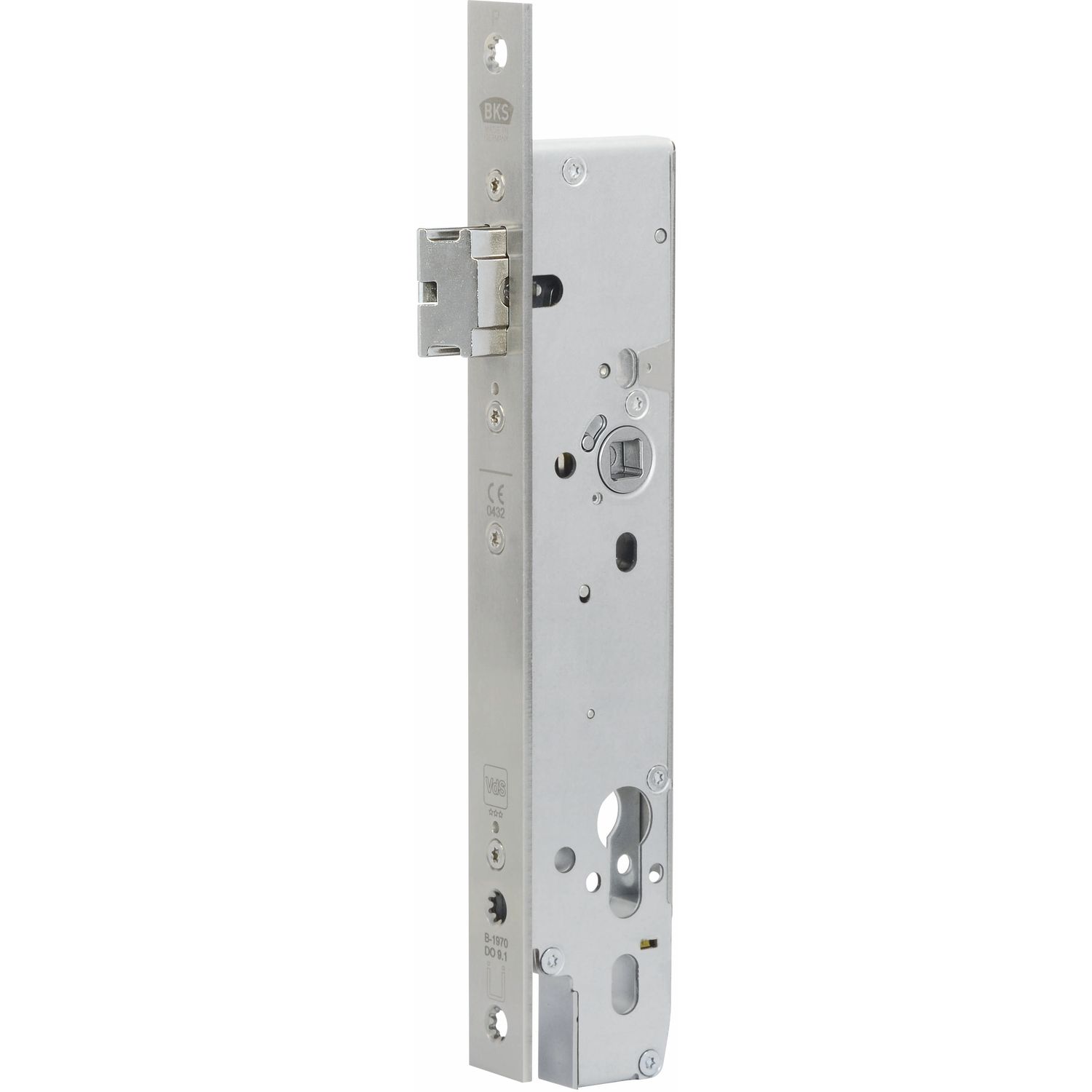 Fluchttürschloss 1971 2-flg. elekt. kuppelbar, universal,eckig, DM 35, Edelstahl