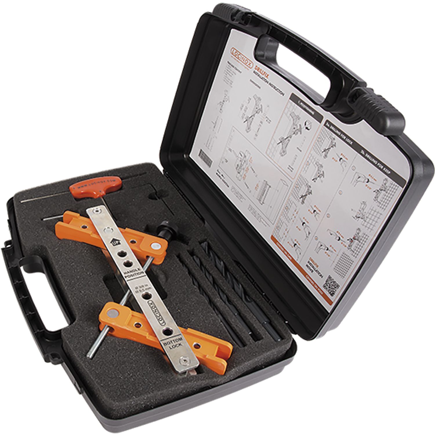 Werkzeugkoffer DRILL-FIX inkl. Bohrschablone für Schloss und Anschlag
