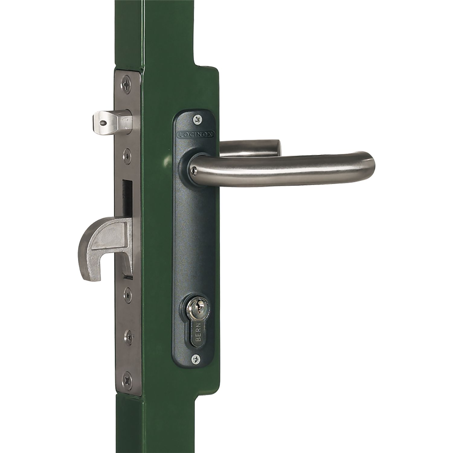 Gittertorschloss LARZ4040 P1L, für 40 mm Vierkantrohr, Aluminium RAL7040
