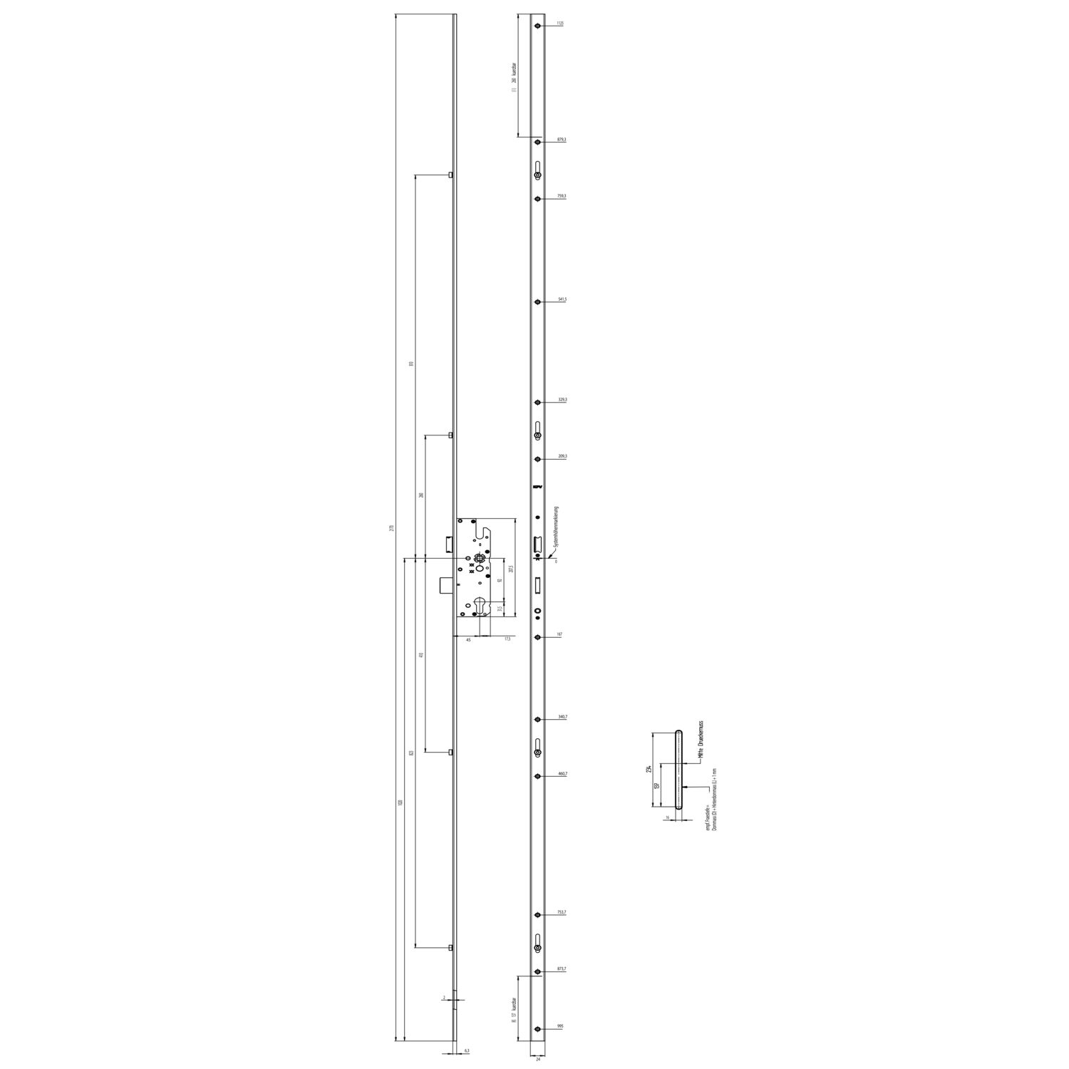 KFV Mehrfachverriegelungsschloss U-Stulp, 2170x24x6mm, DM 45,PZW,Stahl verzinkt