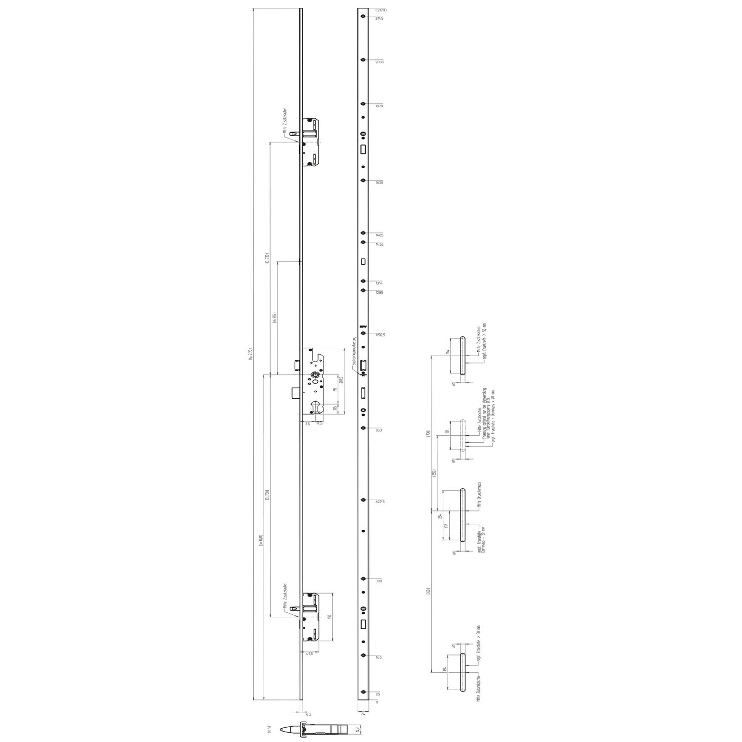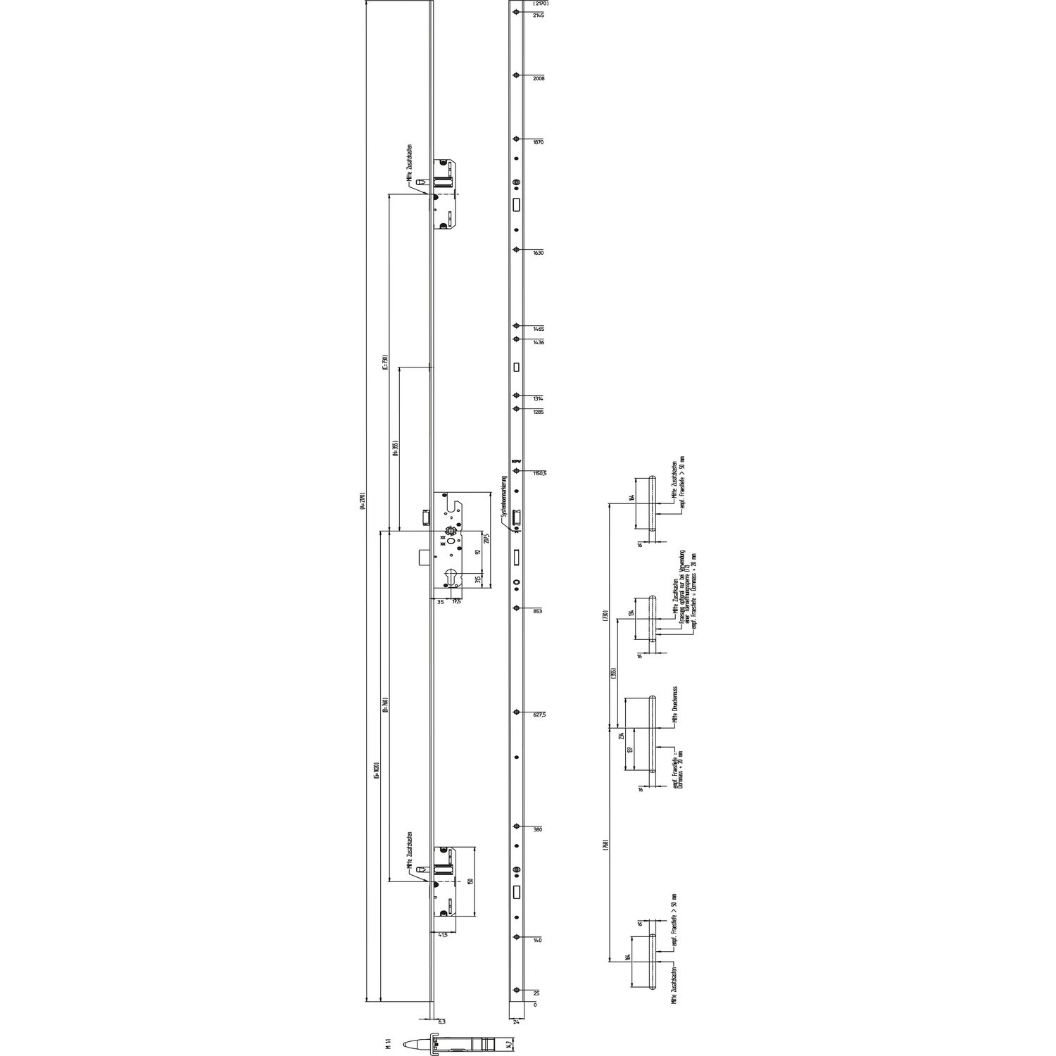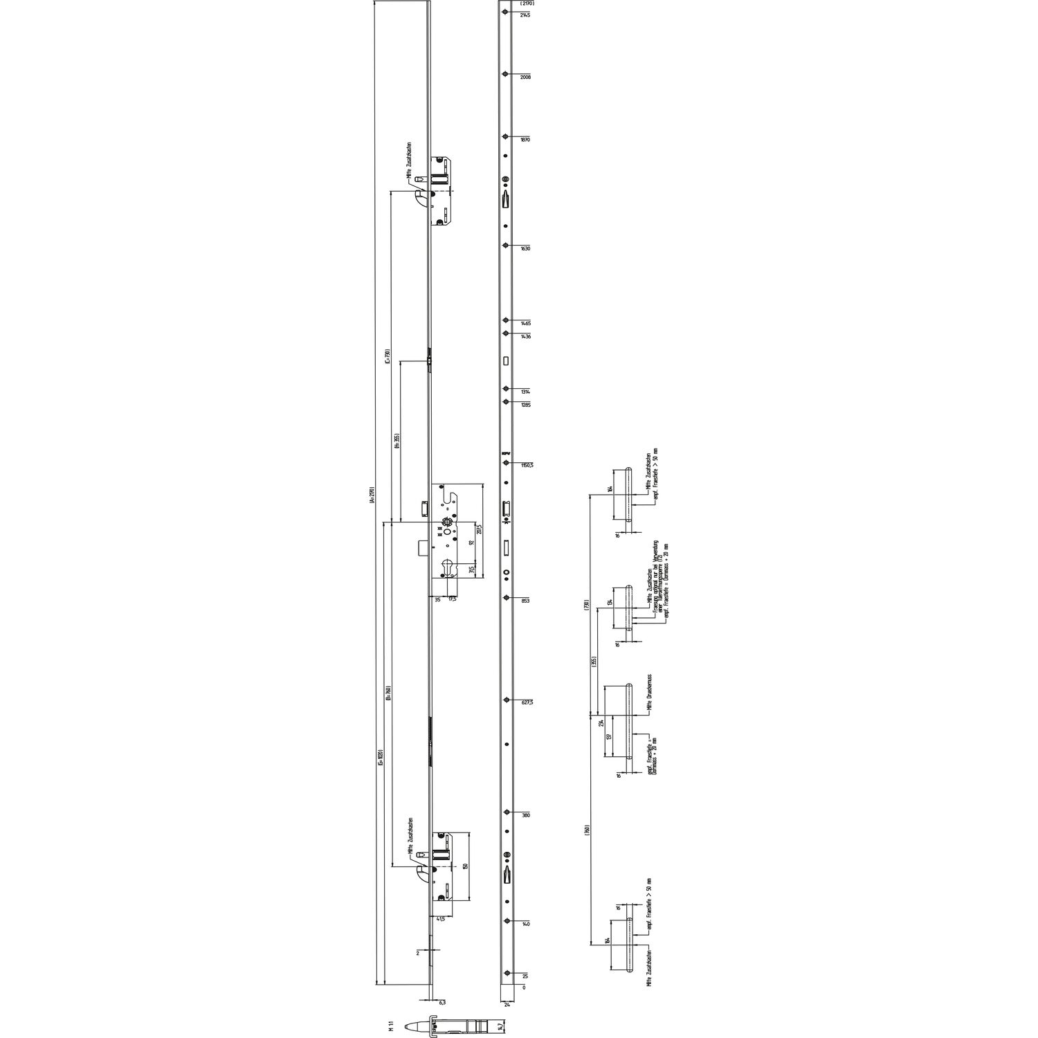 KFV MFV-Schloss BS 2300 DIN, DM 35, U-Stulp 24 x 6,3 mm, silber verzinkt