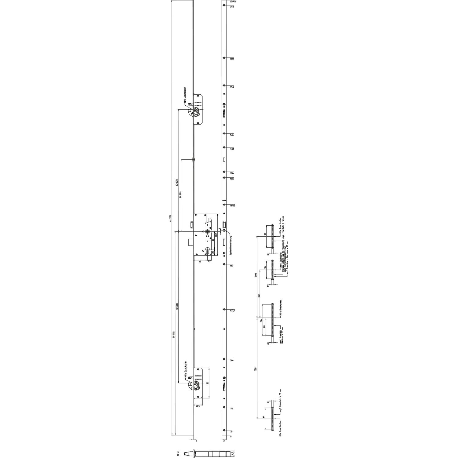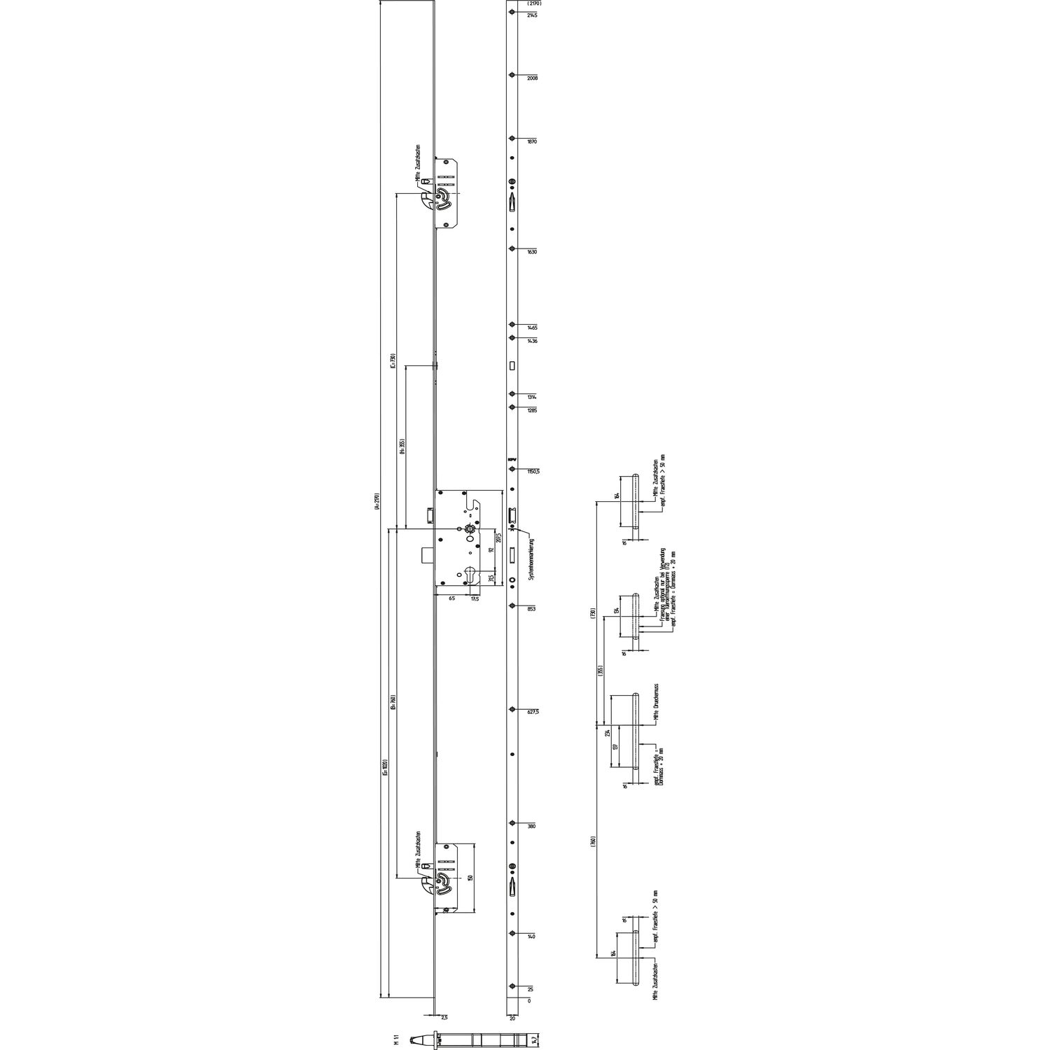 KFV MFV-Schloss BS 2600 f. niedrige Türen ÖNORM,DM 65,Stulp 20mm,silber verzinkt