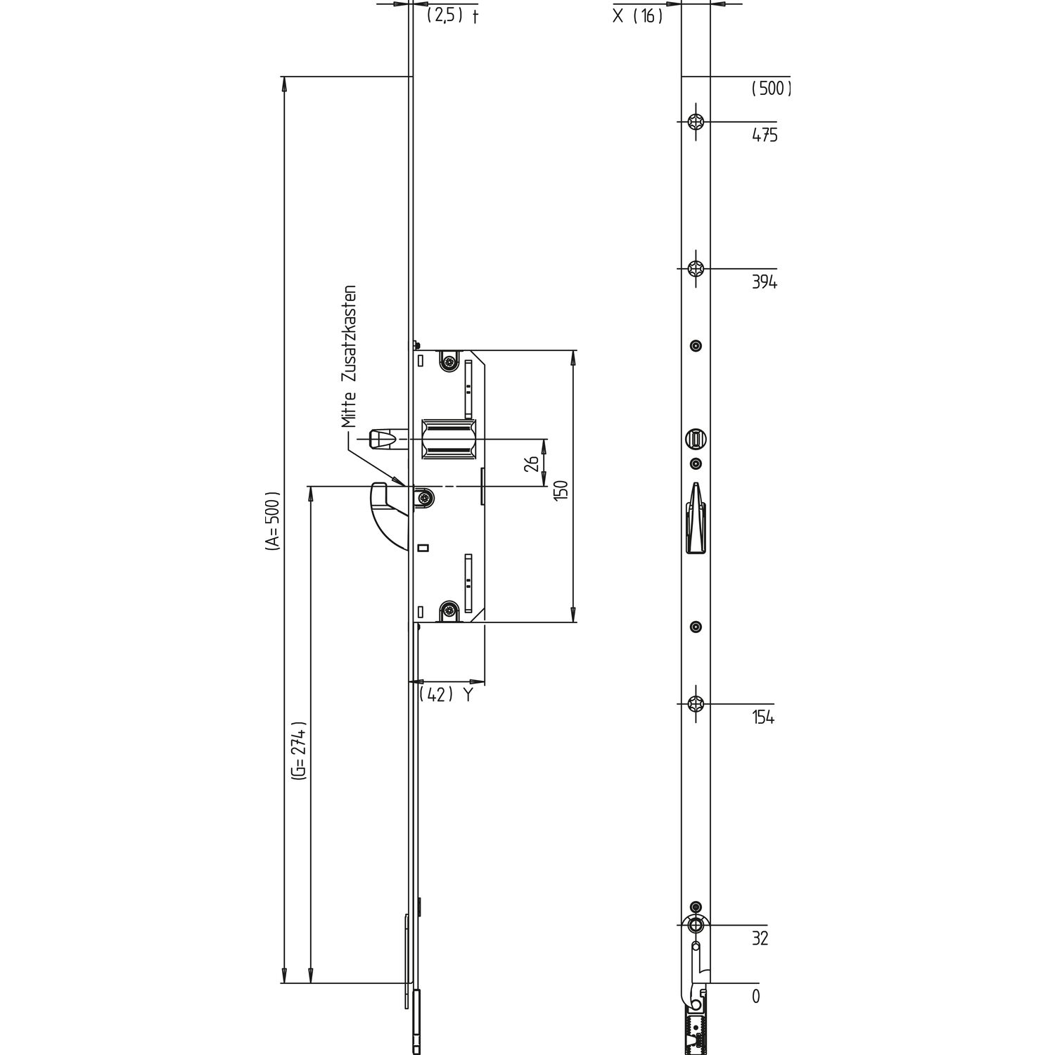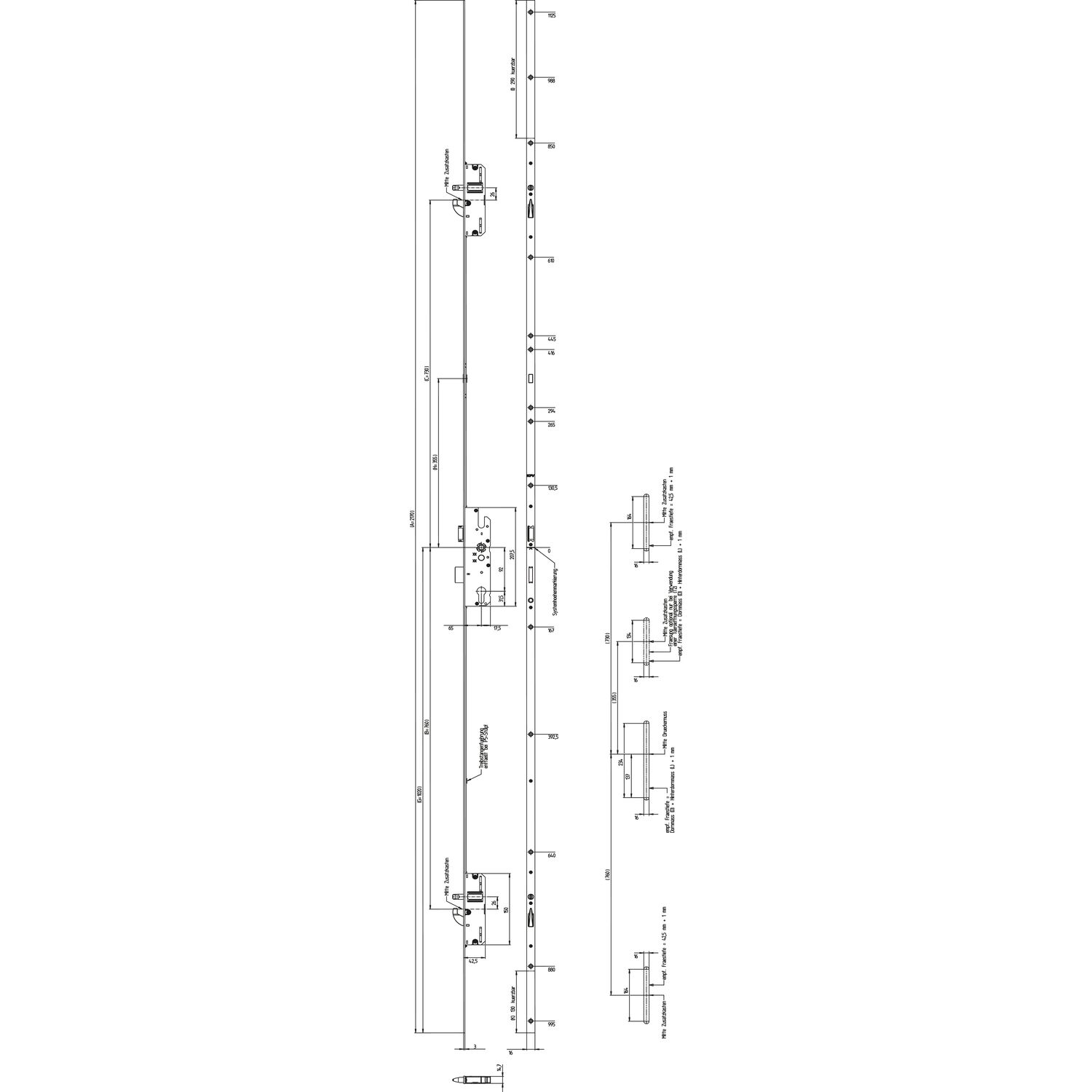 KFV Mehrfachverriegelungsschloss BS 2600 F16 B003, DM 65, Stulp 16mm, verzinkt