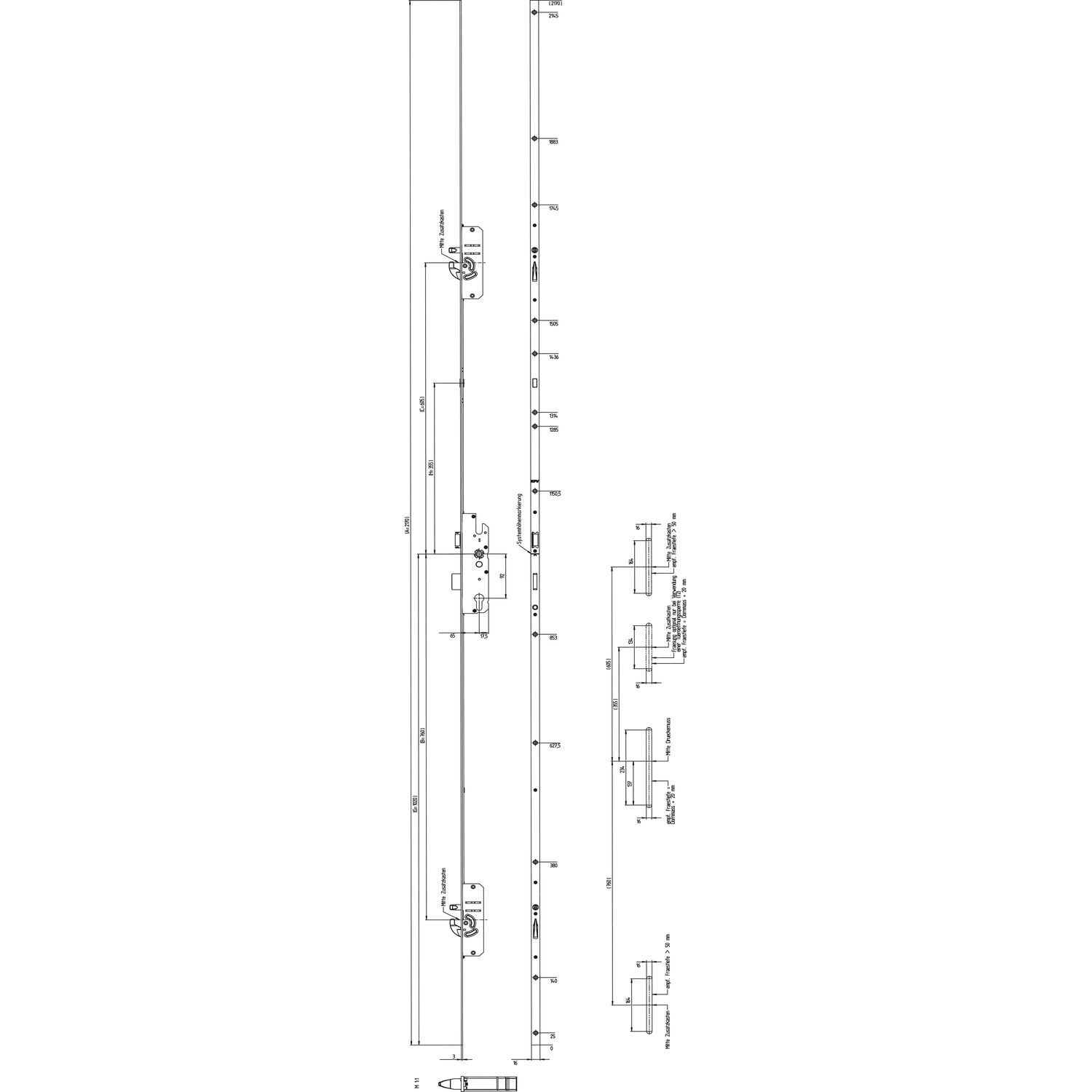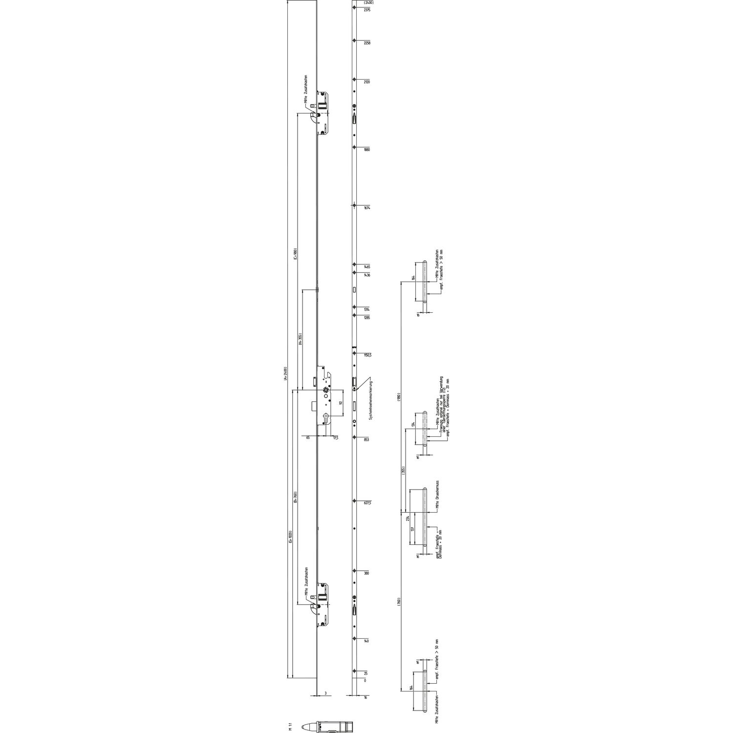 KFV MFV-Schloss BS 2600 f. niedrige Türen ÖNORM,DM 65,Stulp 16mm,silber verzinkt