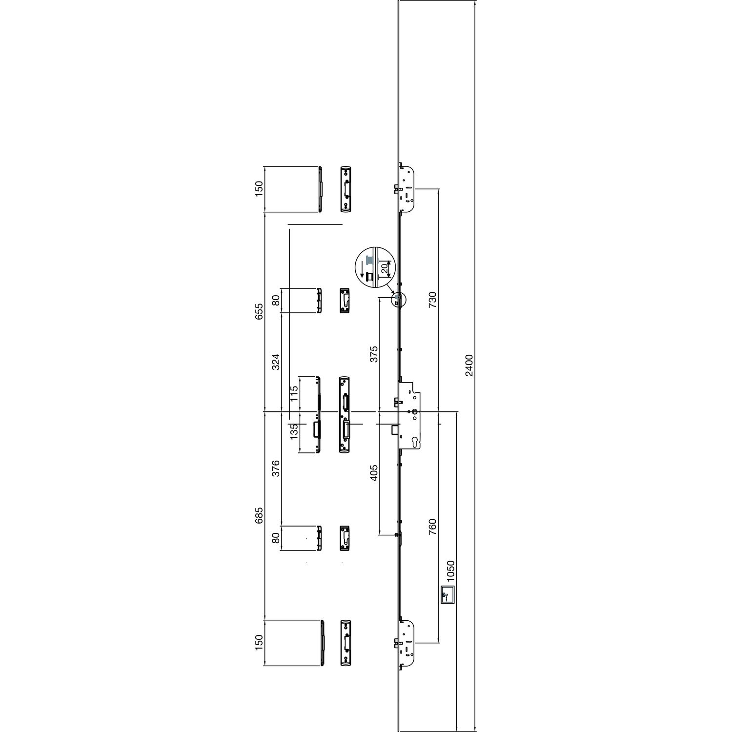 Mehrfachverriegelungsschloss G-TS, DM 45, VK 8, PZ, Stahl verzinkt (FE5A)