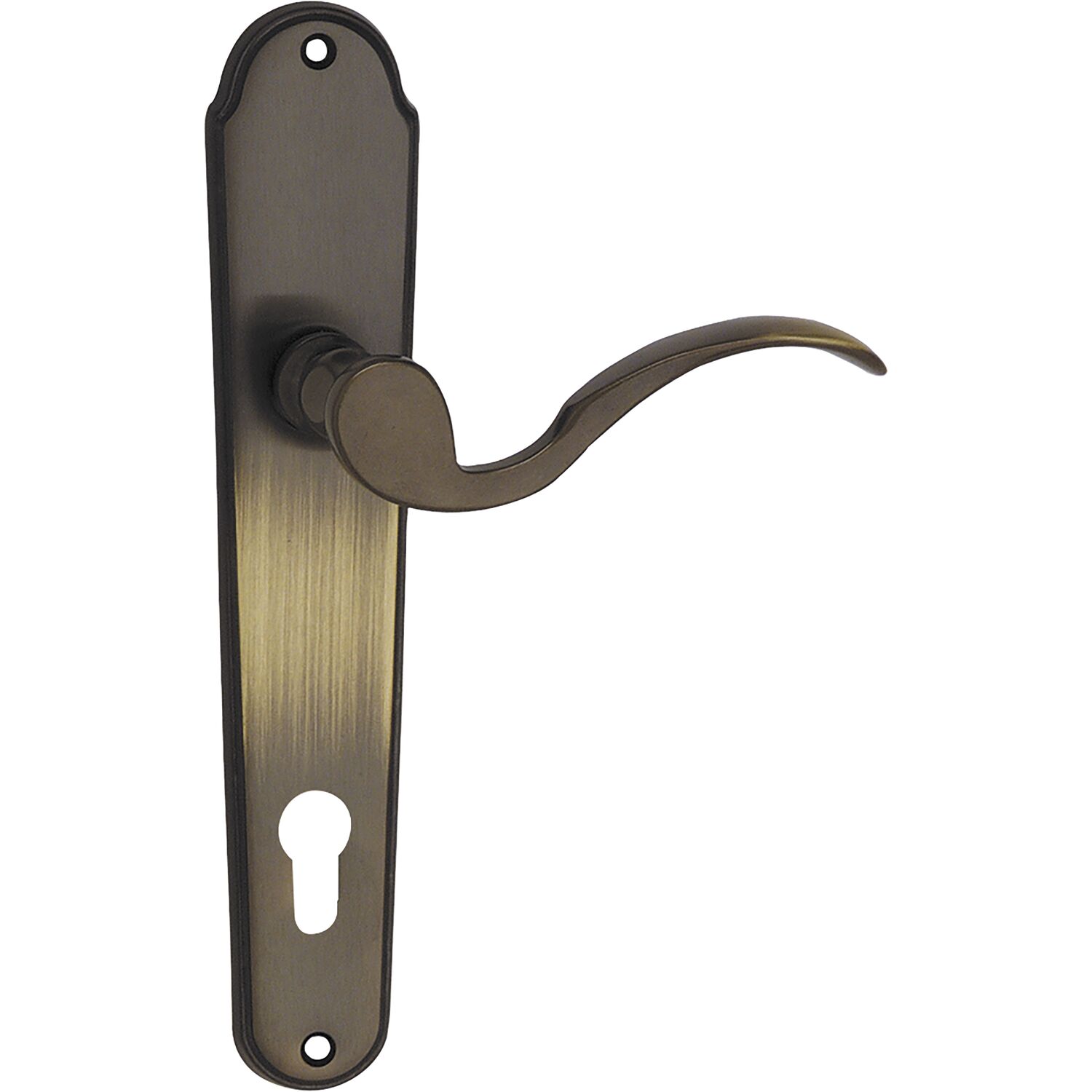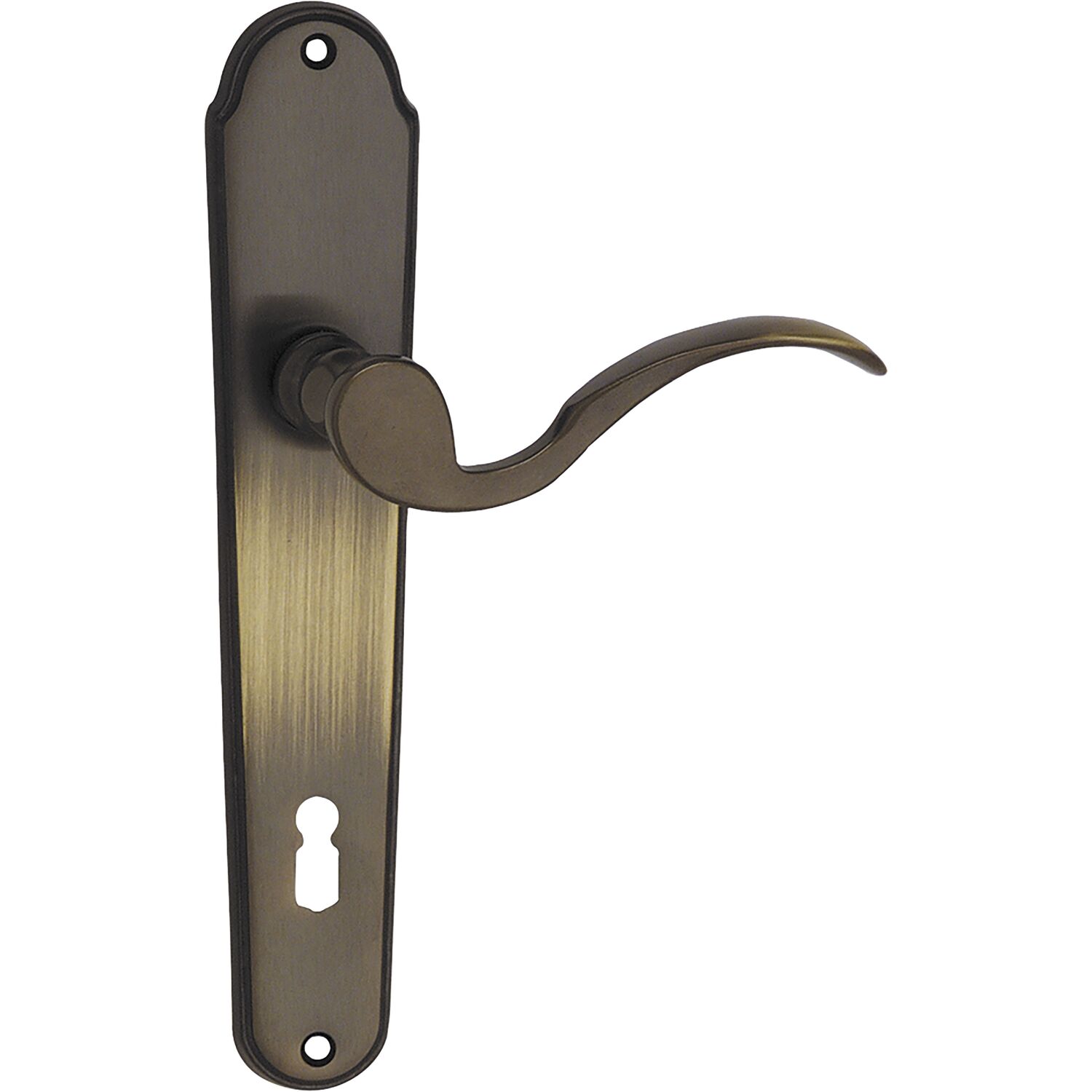 MARCHESI Drückergarnitur LÖFFELFORM/POSTHORN - auf Schild PZ 88, patiniert