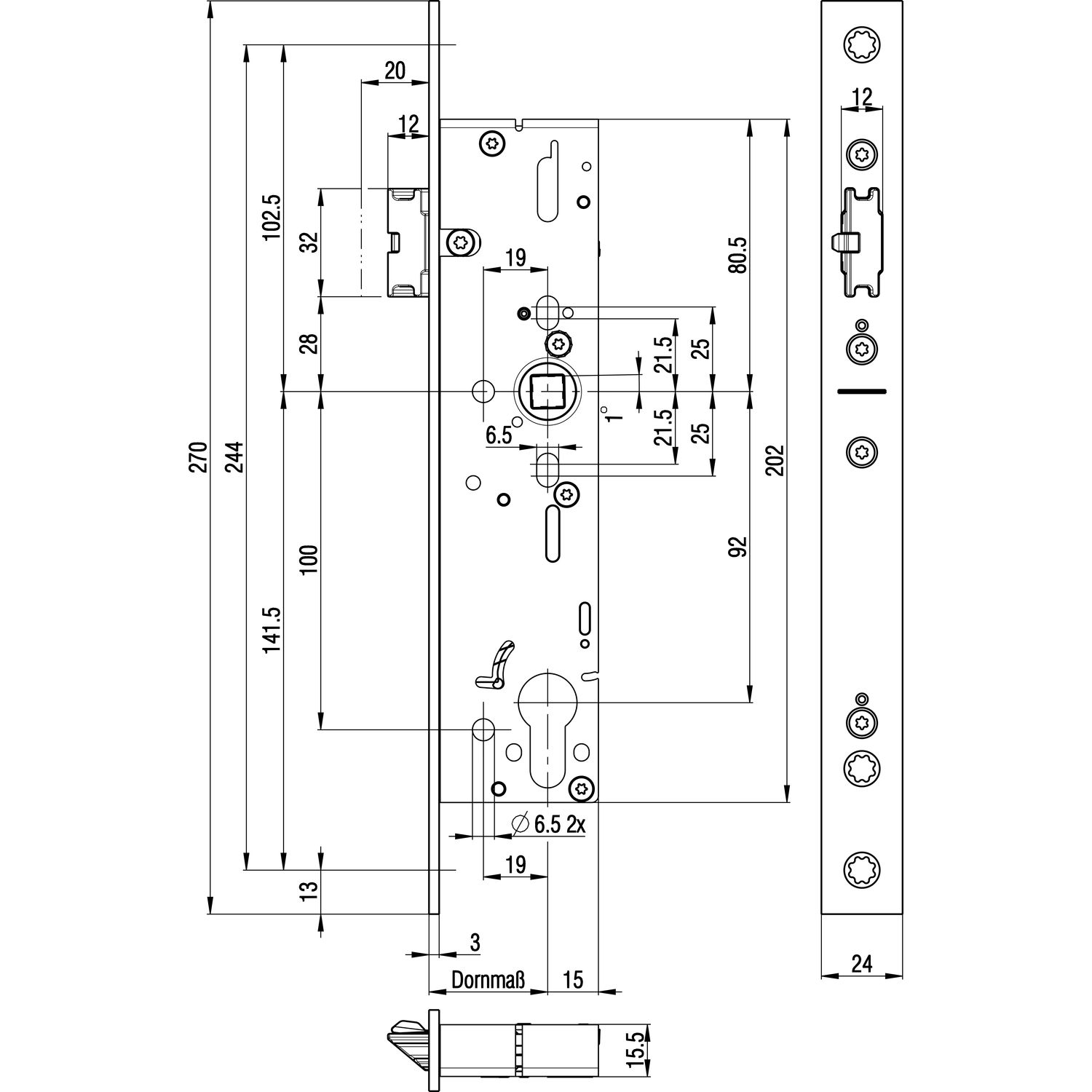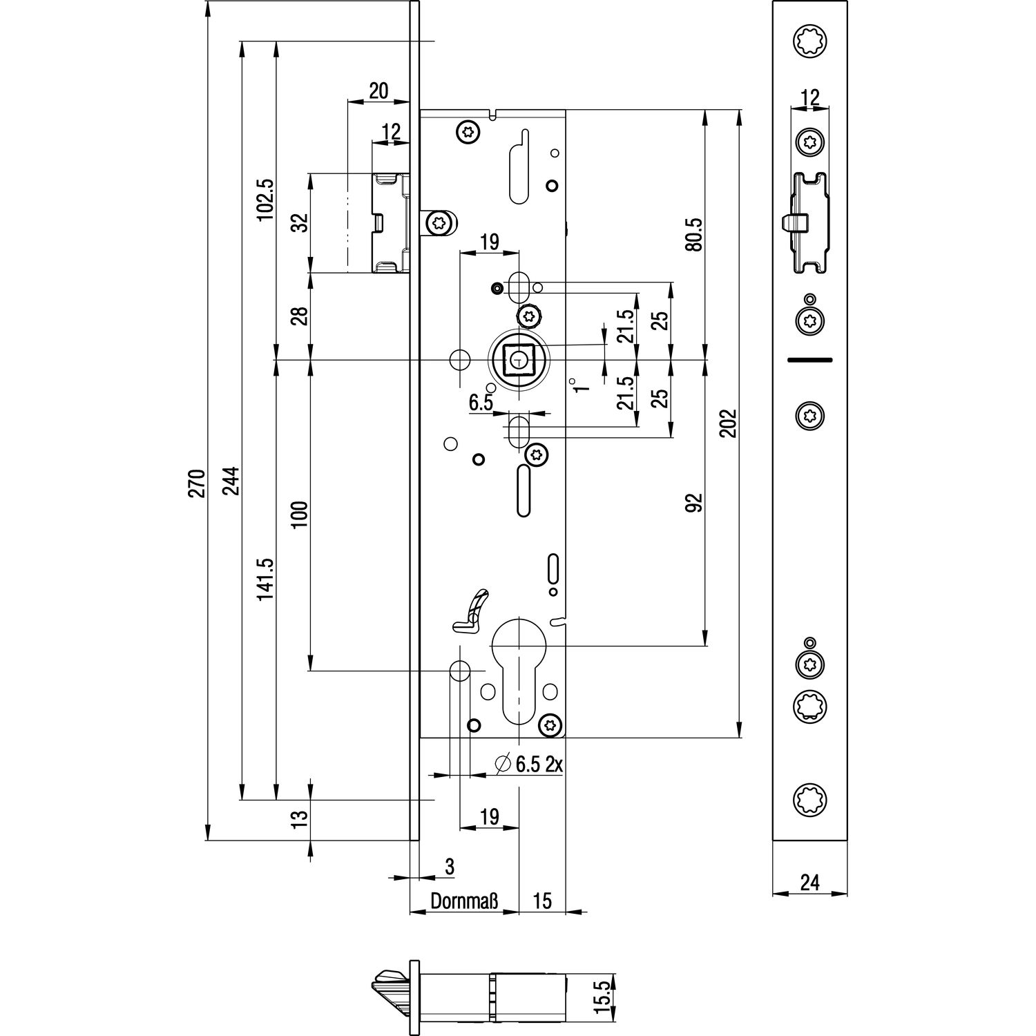 GU MFV-Schloss Secury MR2 ÖNORM,DM 65,Stulp 1750 x 16 x 2,5mm eckig,silberfärbig